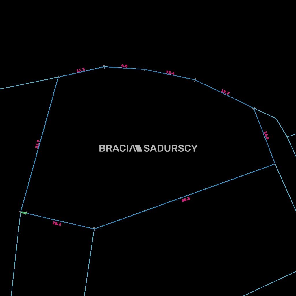 Działka widokowa o powierzchni 1635 m2, działka o nieregularnym kształcie zbliżonym do kwadratu o wymiarach około 40x47 m