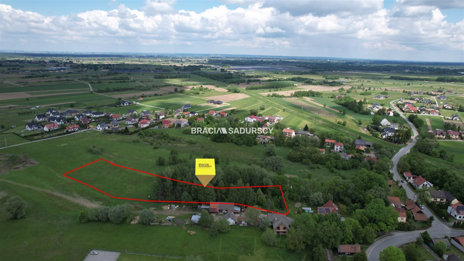 Działka położona jest w intensywnie rozwijającej się okolicy, z bezpośrednim dostępem do podstawowych obiektów użyteczności publicznej (sklep, szkoła, kościół), a jej lokalizacja zapewnia doskonałą komunikację z pobliską Bochnią (4 km) oraz Brzeskiem (10 minut), Krakowem i Tarnowem (25 minut) poprzez autostradę A4, na którą dostać można się w 5 minut.