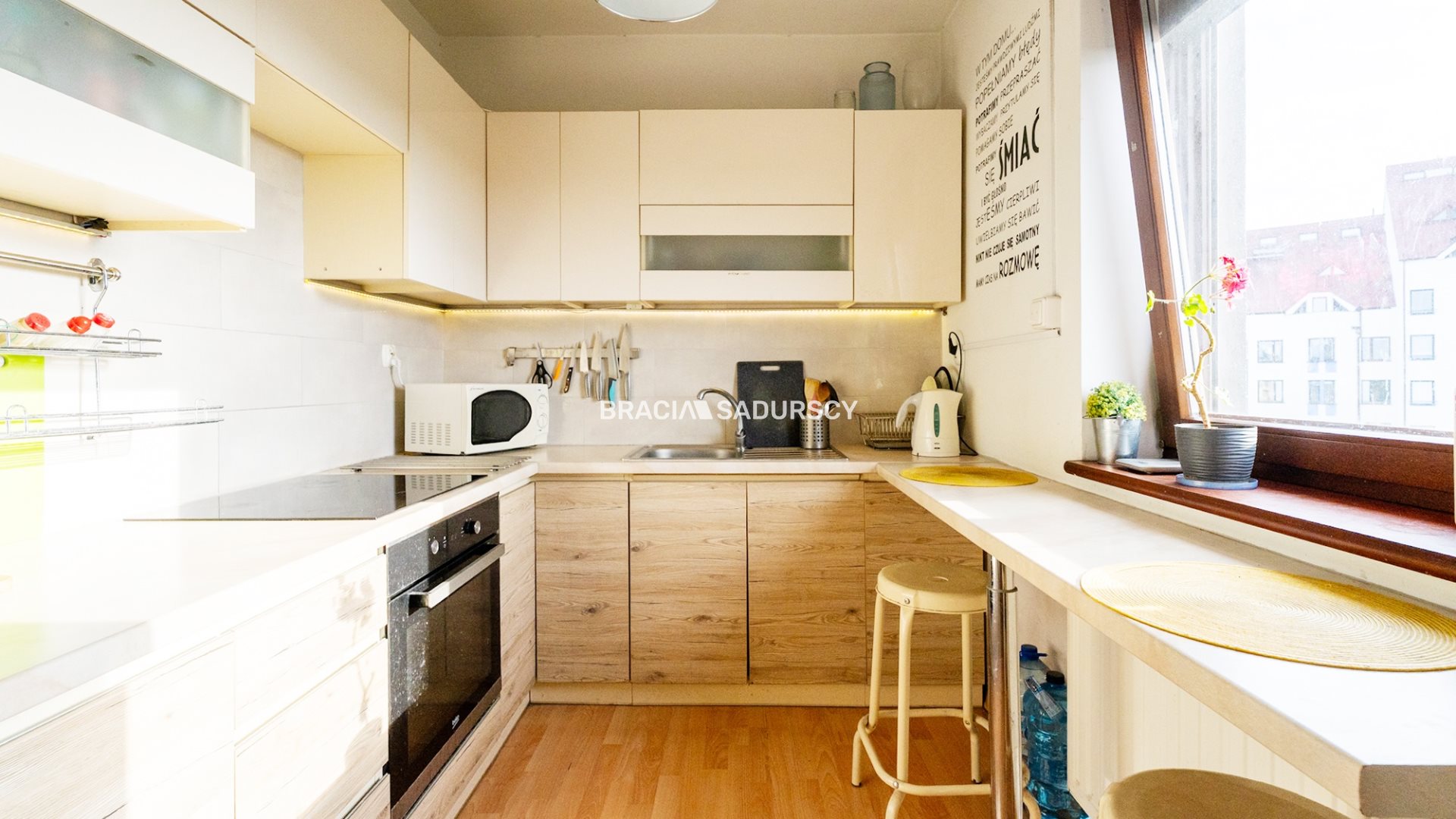Okna drewniane z ekspozycją na zachód, wschód i północ. Widok z okien na panoramę miasta.