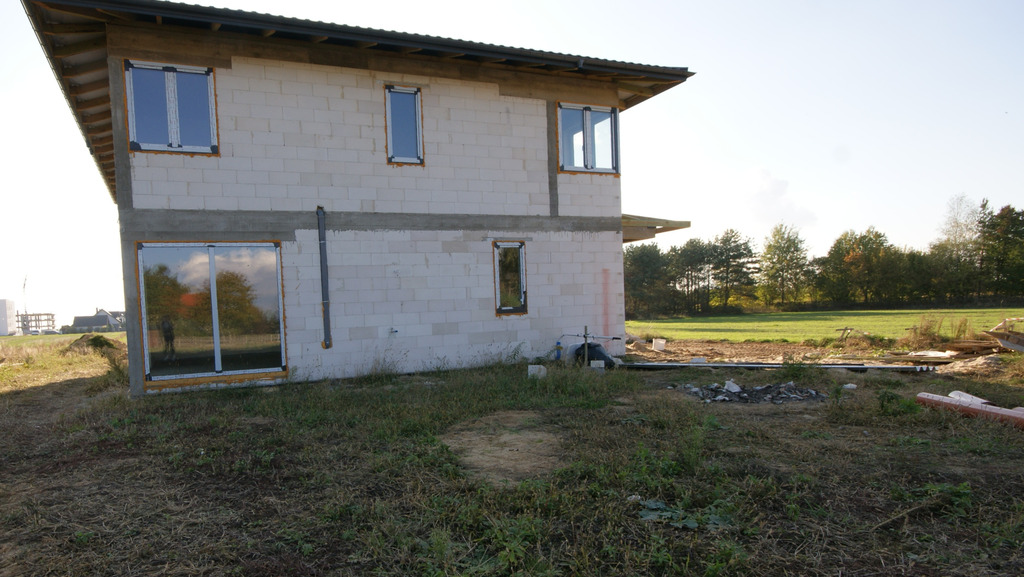 4 pokoje + salon z jadalnią100 m2 powierzchni użytkowej + garaż 19 m2wymurowany z bloczków betonowychgruntownie ocieplony dach czterospadowy, z blachodachówki stan deweloperski z gotowymi instalacjami ( wody, kanalizacja, elektryczną wewnątrz, pompa ciepła Kaisai, z ogrzewaniem podłogowym w całym budynku, wyprowadzenie instalacji pod domofon, monitoring i alarm, światłowodu, klimatyzacji, jak również instalacja napędu bramy garażowej Wiśniowski), gotowe tynki na zewnątrz i wewnątrzokna PCV, 3-szybowe,