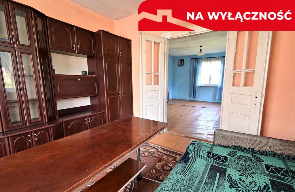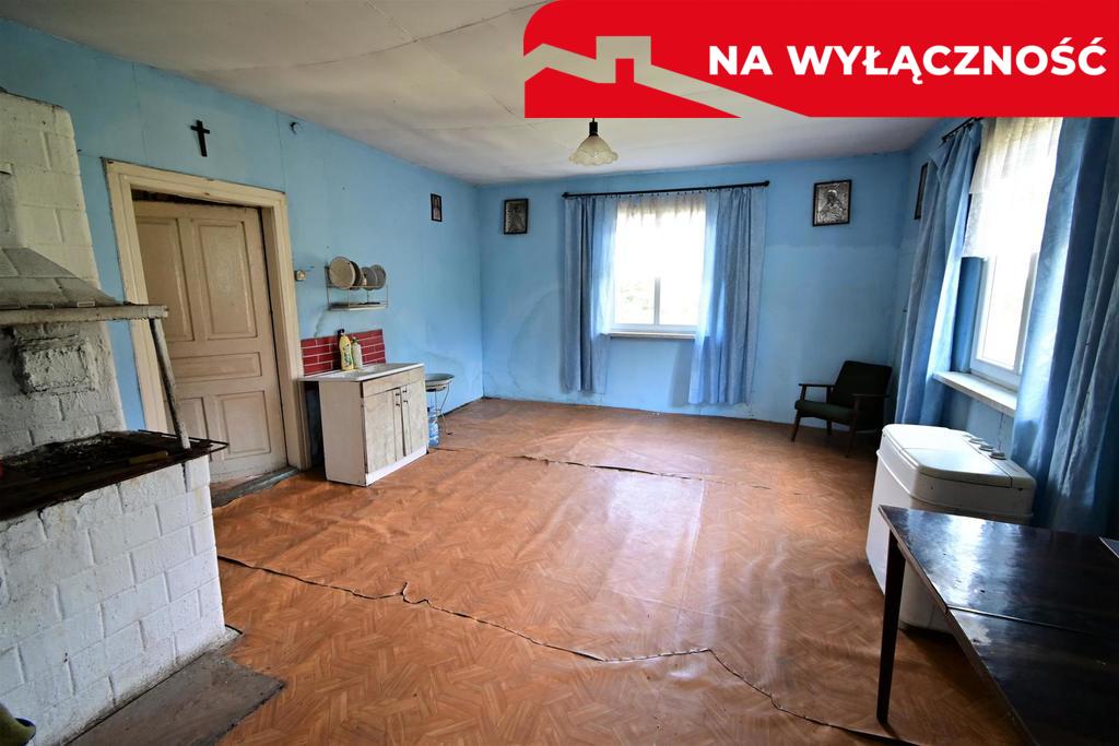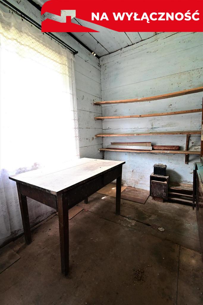 Budynek drewniany z lat '60, nieocieplony, pokryty blachą o powierzchni około 80 m² (wymiary: 7,5 m x 11 m). Składa się z czterech pokoi, w tym jeden z kuchnią oraz przedpokoju. W domu nie ma obecnie łazienki. Cały budynek do generalnego remontu.