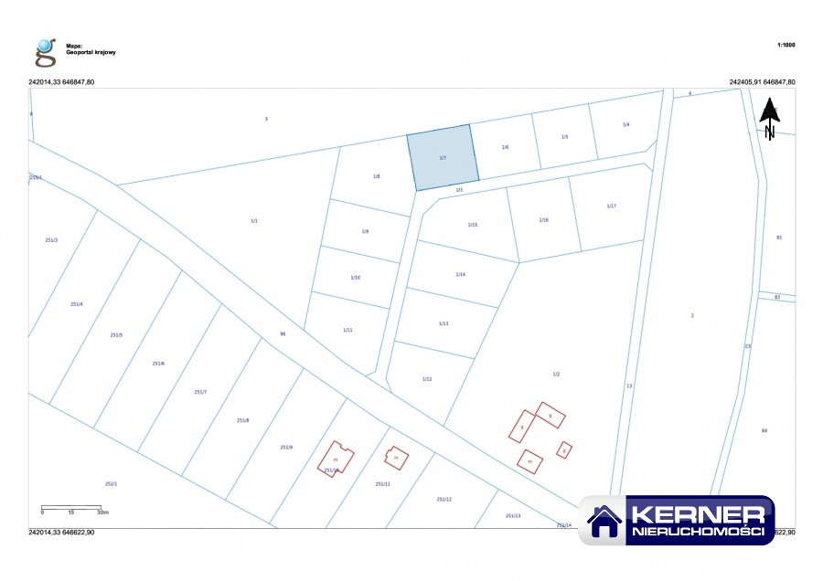 Polecamy Państwu DZIAŁKĘ NR 1/7 o pow. 942 m2, położoną w miejscowości Długołęka, obręb Długołęka, Gm. Nowogard, pow. goleniowski, woj. zachodniopomorskie. Nieruchomość znajduje się w kompleksie 17 działek (15 przeznaczonych do sprzedaży, w tym dz. nr 1/3 stanowi drogę wewnętrzną (udział). Działka ma dostęp do drogi publicznej. WYDANE WARUNKI ZABUDOWY: BUDYNEK MIESZKALNY JEDNORODZINNY WRAZ Z URZĄDZENIAMI BUDOWLANYMI. Polecamy z uwagi na lokalizację (6 km od Nowogardu), lokatę kapitału, a przede wszystkim atrakcyjną, niską cenę 69 zł/m2 do negocjacji. Polecamy i Zapraszamy na Prezentację. INFORMACJE PODSTAWOWE:
