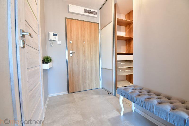 Mieszkanie jest umeblowane i nowocześnie zaaranżowane, wykończone materiałami wysokiej klasy. Kuchnia w zabudowie wyposażona w lodówko-zamrażarkę, płytę indukcyjną, piekarnik, okap. Łazienka z natryskiem, pralka na wyposażeniu. Duża garderoba, sofa rozkładana, stolik. Wszystkie sprzęty i wyposażenie nowe.