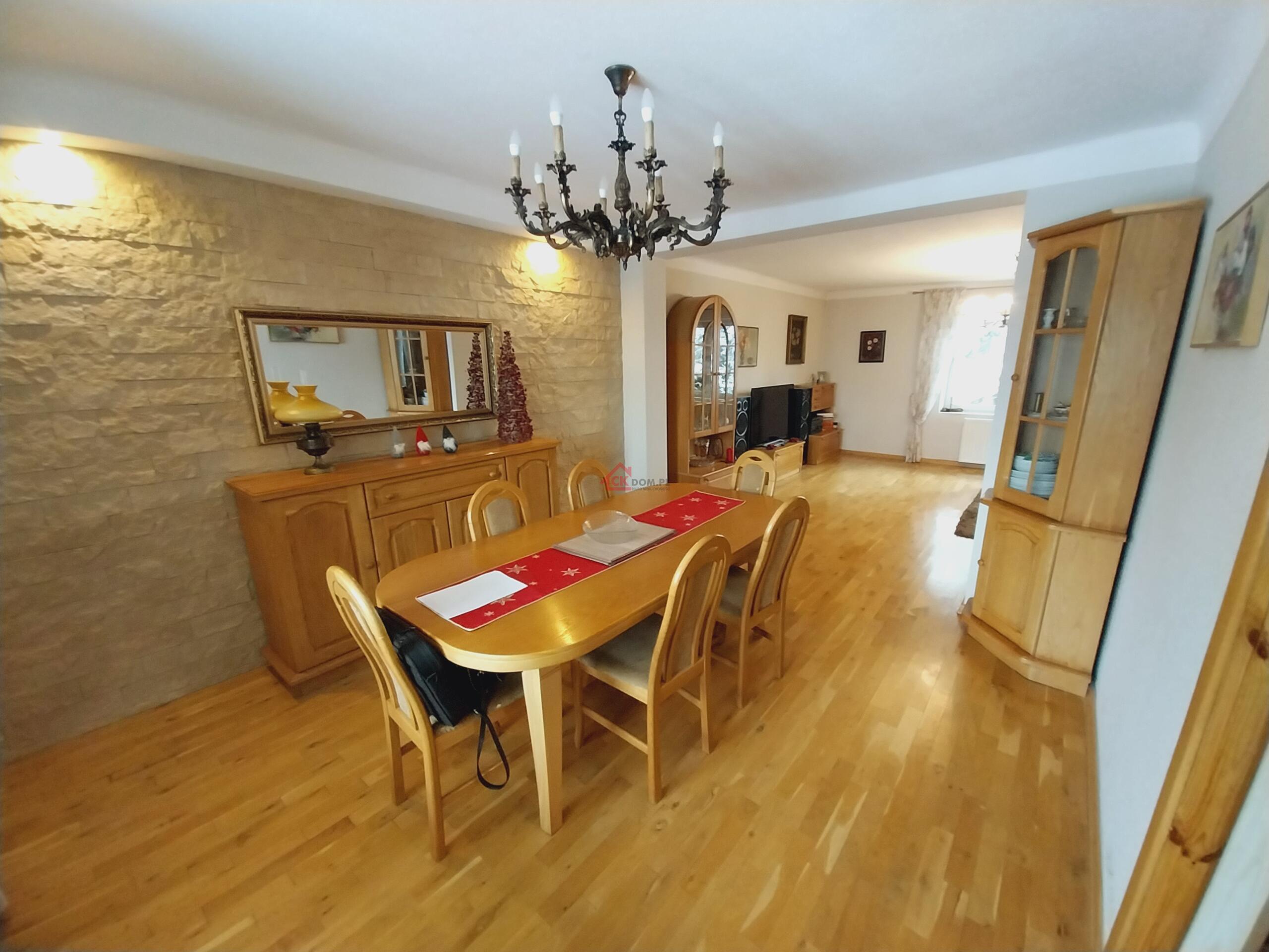 Dom został wybudowany w latach 80-tych, jest murowany, docieplony z dwuspadowym dachem, posiada podpiwniczenie w którym znajduje się kotłownia z piecem na eko-groszek oraz drugi piec, pomieszczenia gospodarcze i garaż(1 stanowisko z kanałem). Do budynku przylega wiata garażowa.