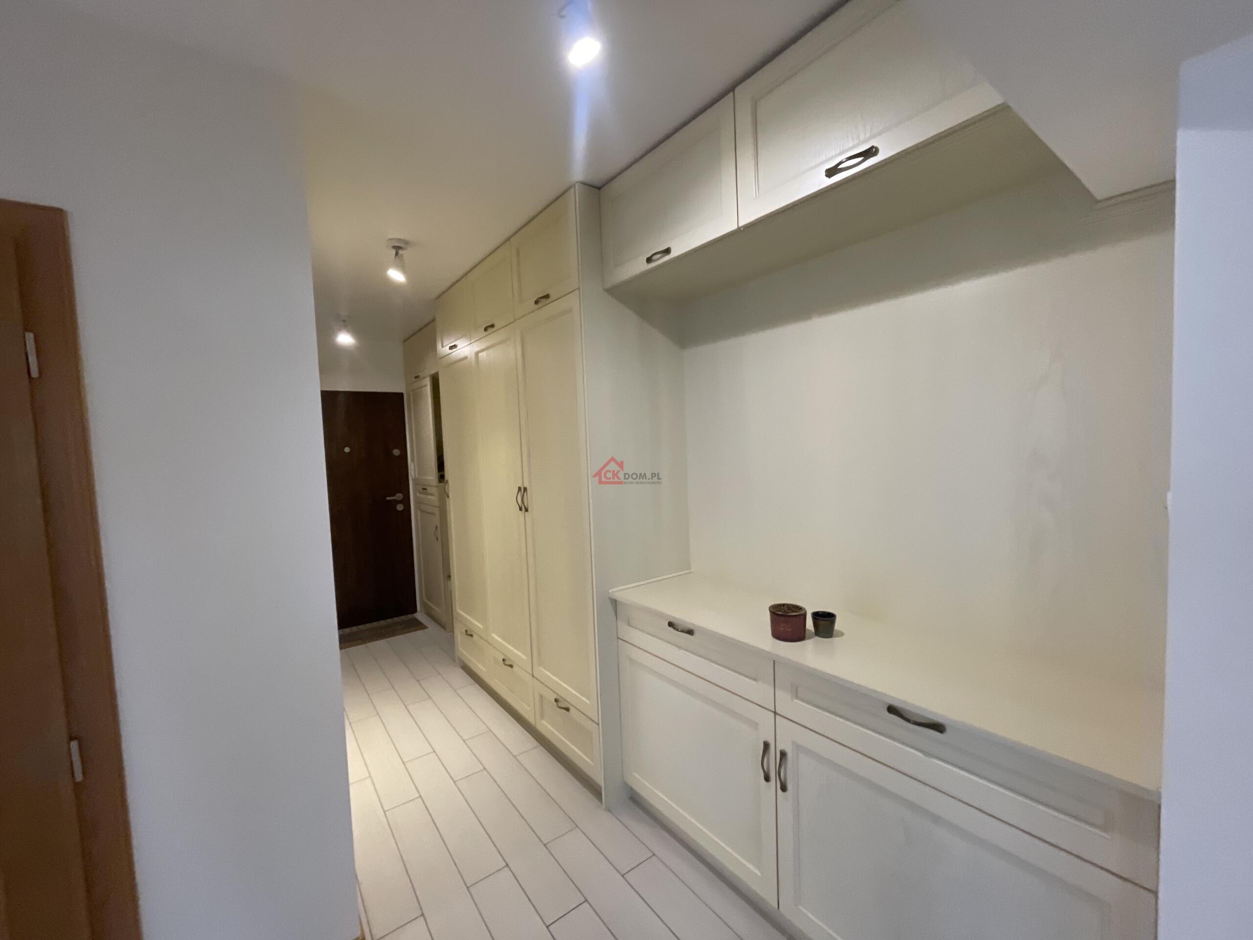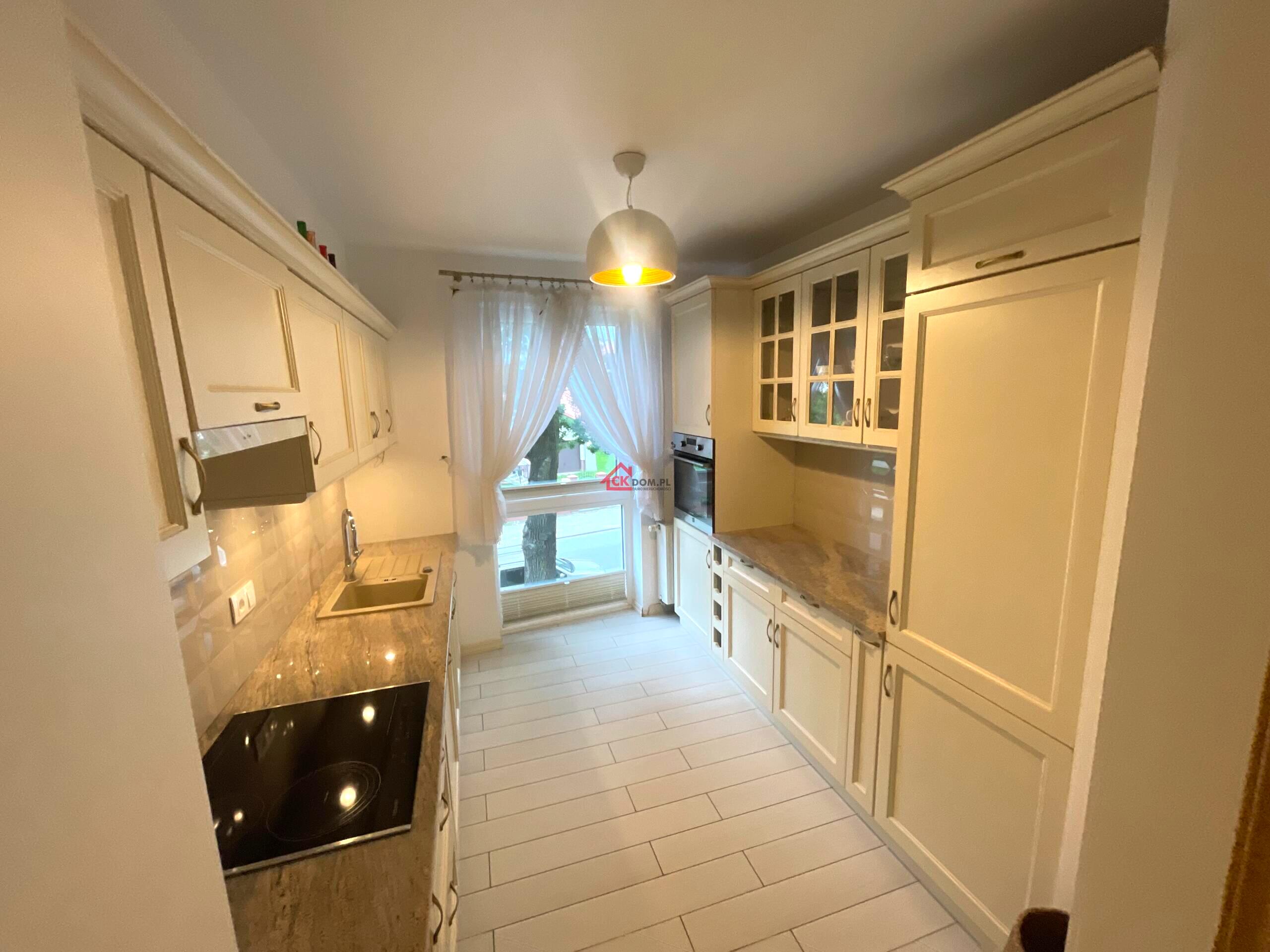 Mieszkanie urządzone z wysokiej klasy materiałów , zabudowa w kuchni i na korytarzu drewniana.