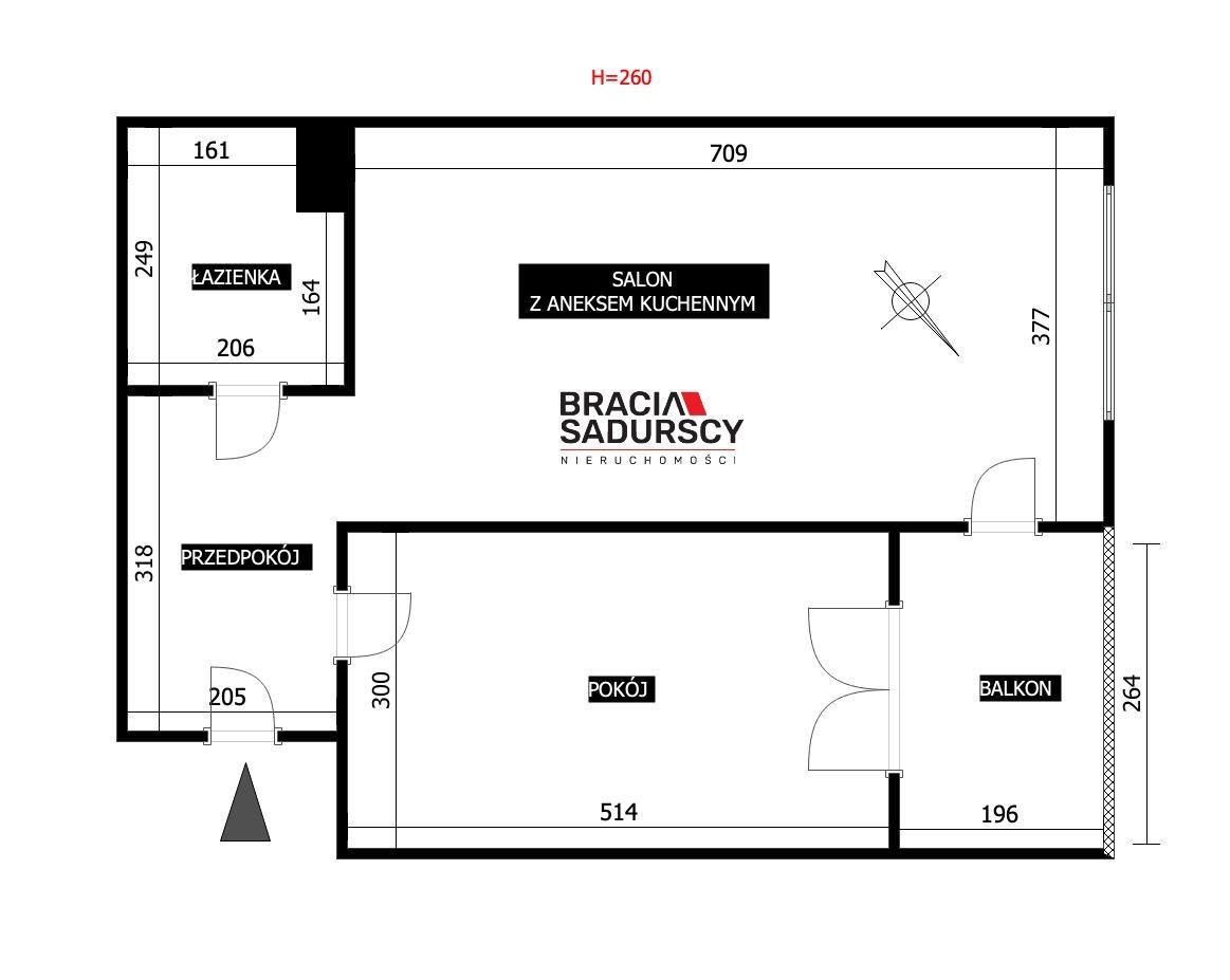 -aneks kuchenny połączony z salonem (o pow 26,72 m2) z wyjściem na balkon,