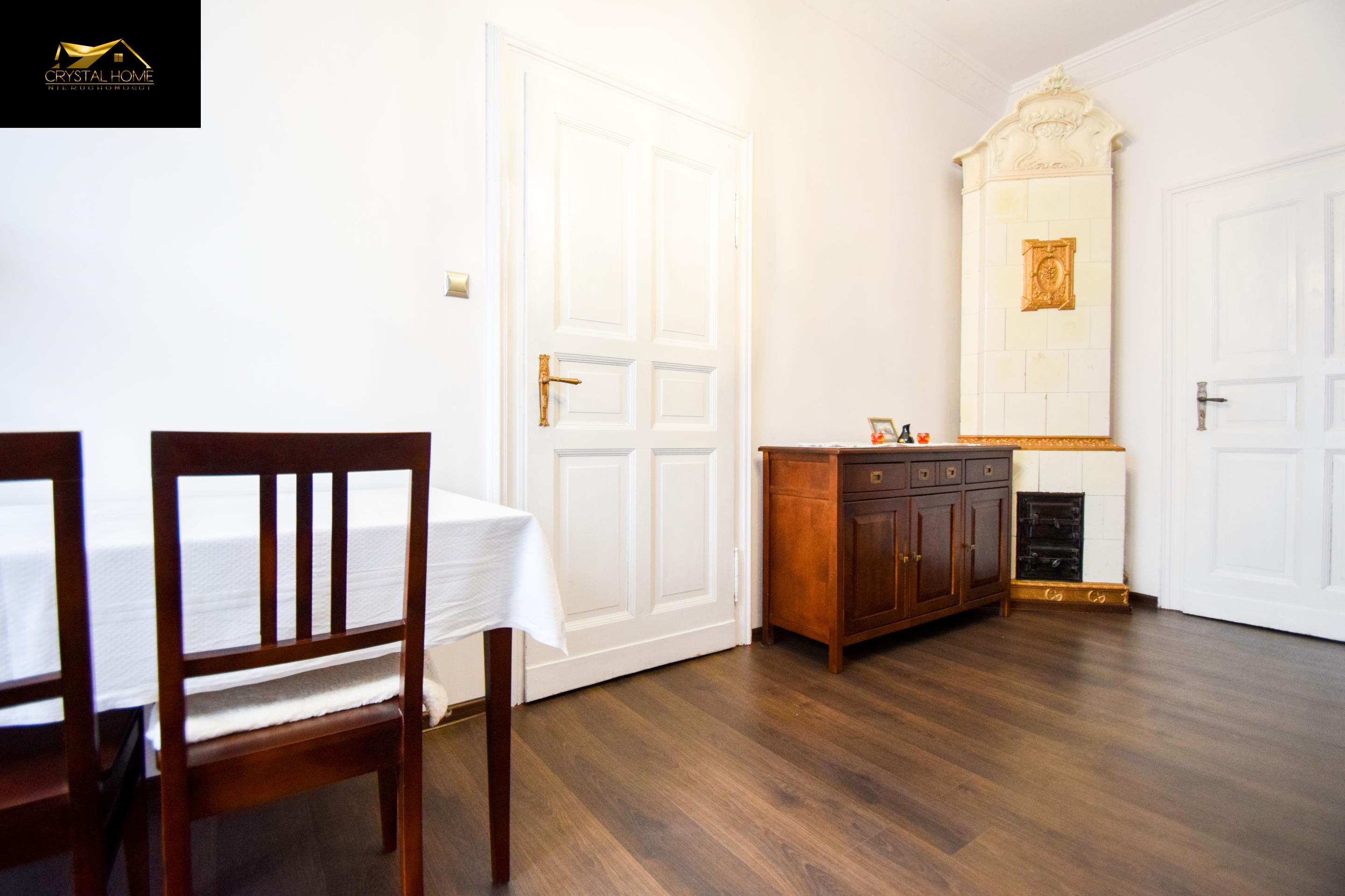 Mieszkanie wyróżnia się również pięknymi drewnianymi drzwiami oraz oknami drewnianymi w dobrym stanie. Układ okien dwustronny z pewnością zapewni mieszkańcom odpowiednie doświetlenie oraz wentylację.