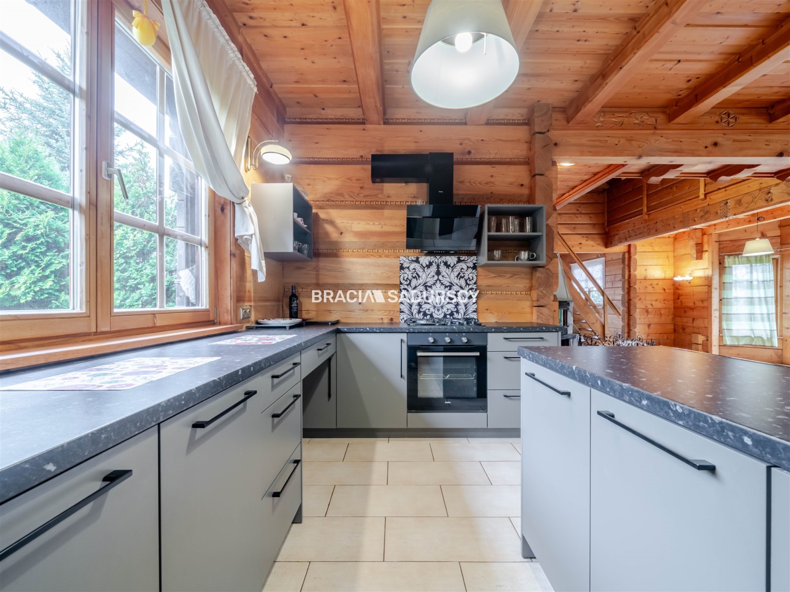 Całość emanuje przytulnym, naturalnym klimatem, w którym ciepło drewna harmonijnie współgra z nowoczesnymi rozwiązaniami technicznymi Dom idealny dla osób poszukujących spokoju, kontaktu z naturą i wysokiego standardu życia w bliskim sąsiedztwie Krakowa