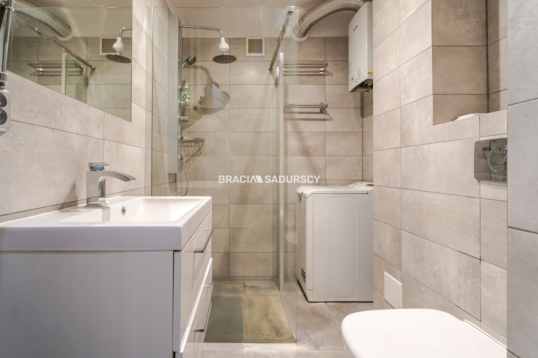 łazienki z prysznicem i pralką,