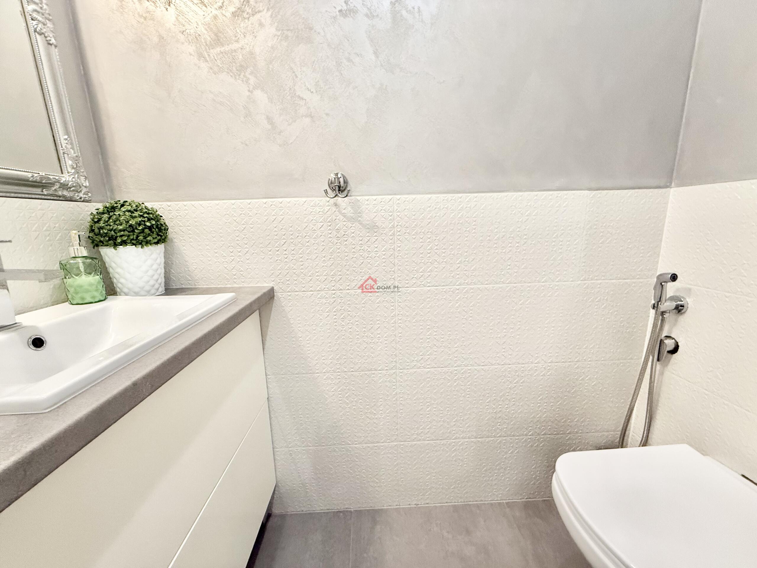 - nowe instalacje elektryczna i wodno-kanalizacyjna, drewniane podłogi i gres w strefach użytkowych, kuchnia w zabudowie na wymiar z kamiennym blatem, sprzęt AGD marki Electrolux oraz lodówka Samsung French Door, plisy zaciemniające we wszystkich oknach, energooszczędne oświetlenie LED, klimatyzacja z funkcją grzania, nowe drzwi wewnętrzne i zewnętrzne.