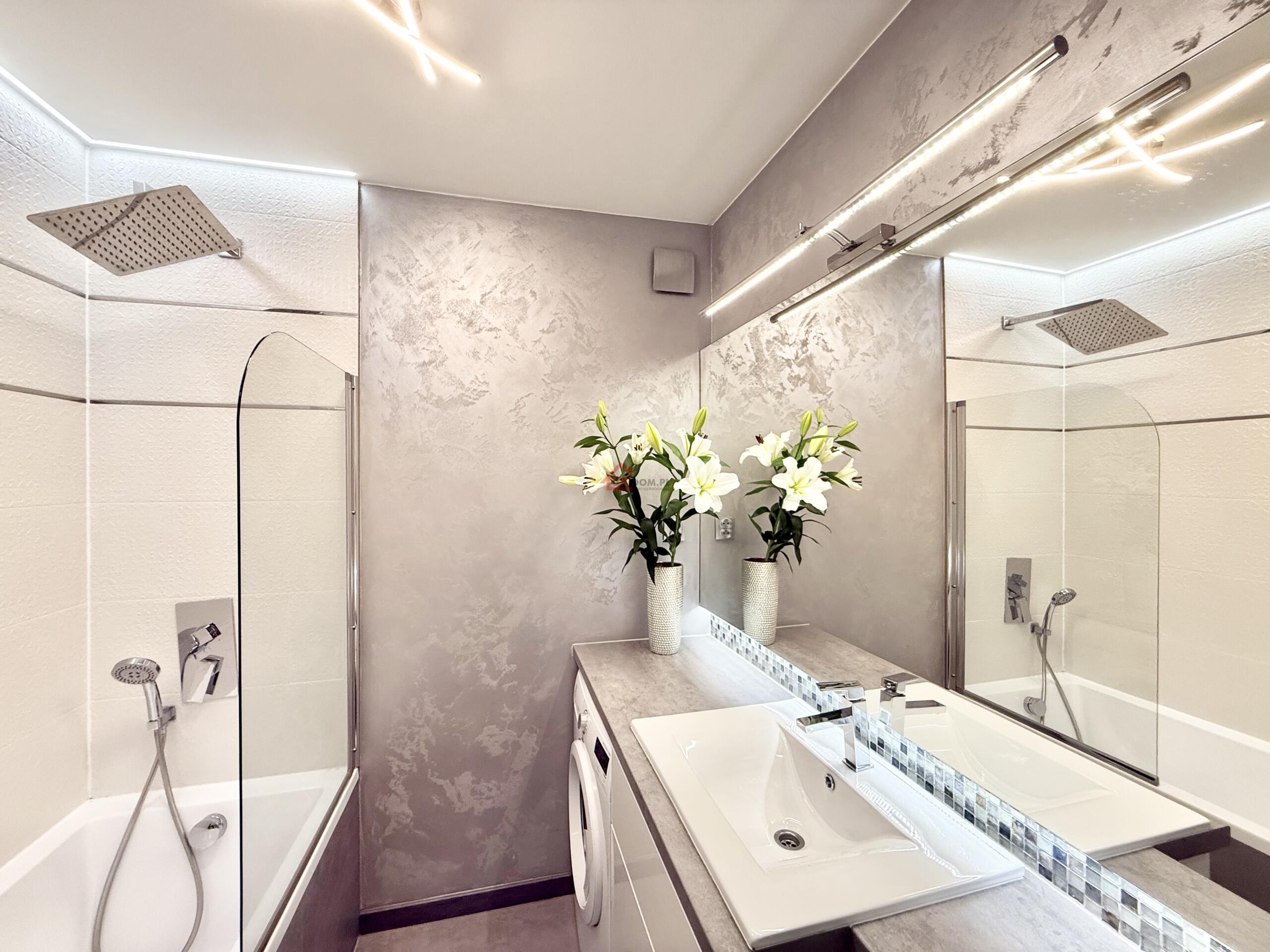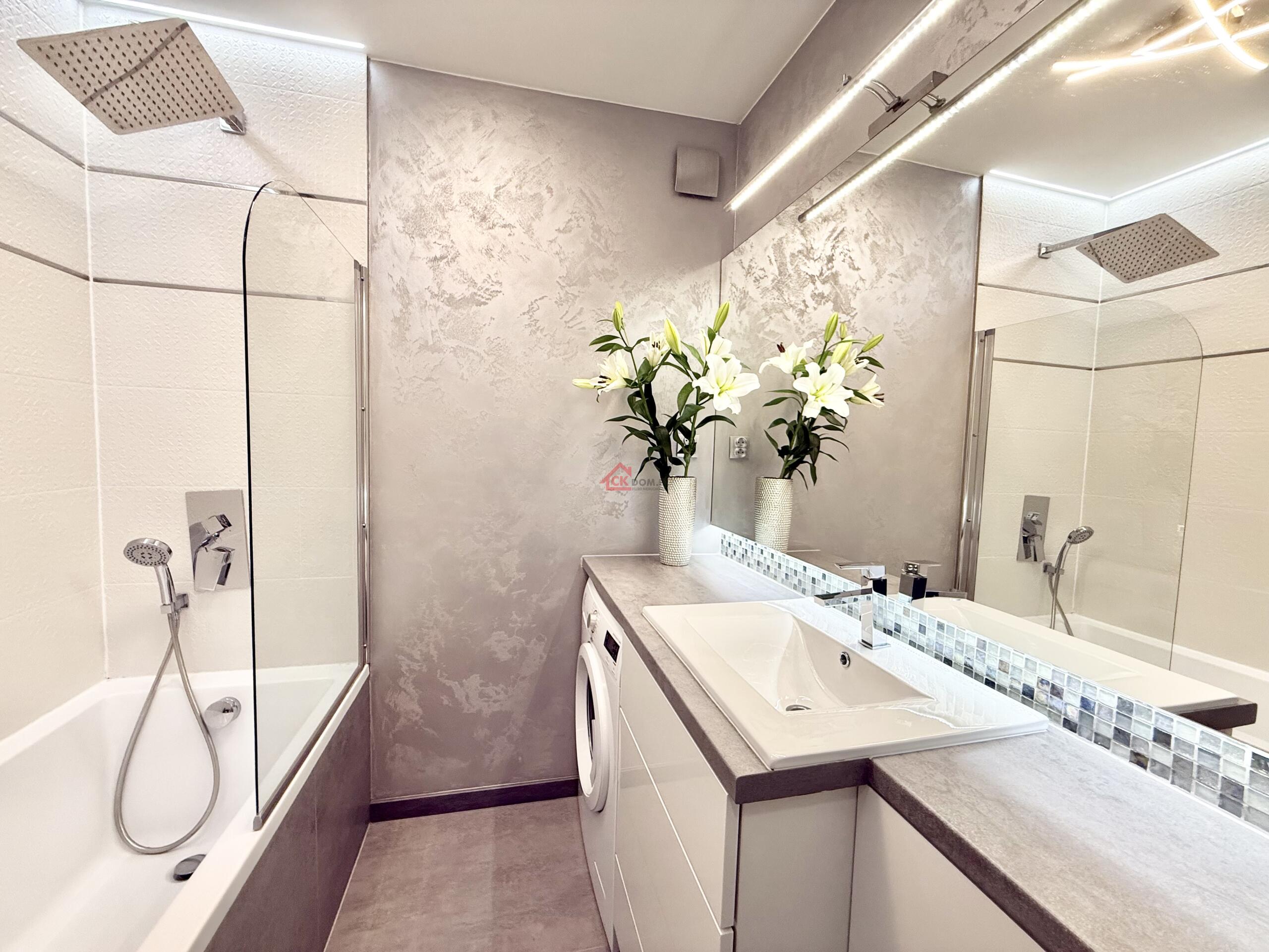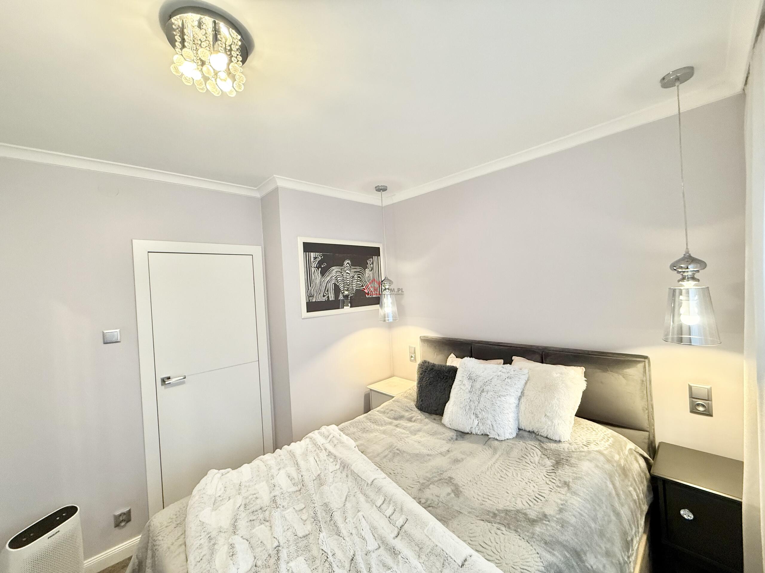 Mieszkanie zostało urządzone z dbałością o każdy detal i wykończone materiałami wysokiej jakości: