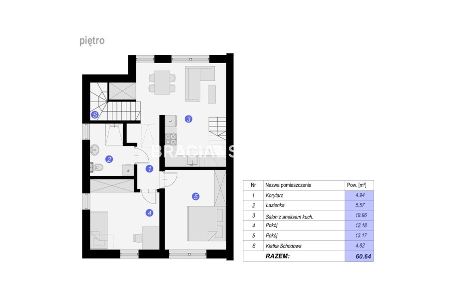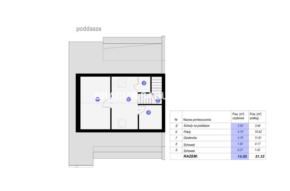 -Mieszkanie znajduje się na piętrze budynku w zabudowie bliźniaczej i składa się z przestronnego pokoju dziennego z aneksem kuchennym, dodatkową przestrzenią na spiżarnię, dwóch wygodnych pokoi oraz dużej łazienki. Na poddaszu znajduje się duża sypialnia, z możliwością wydzielenia drugiej łazienki.