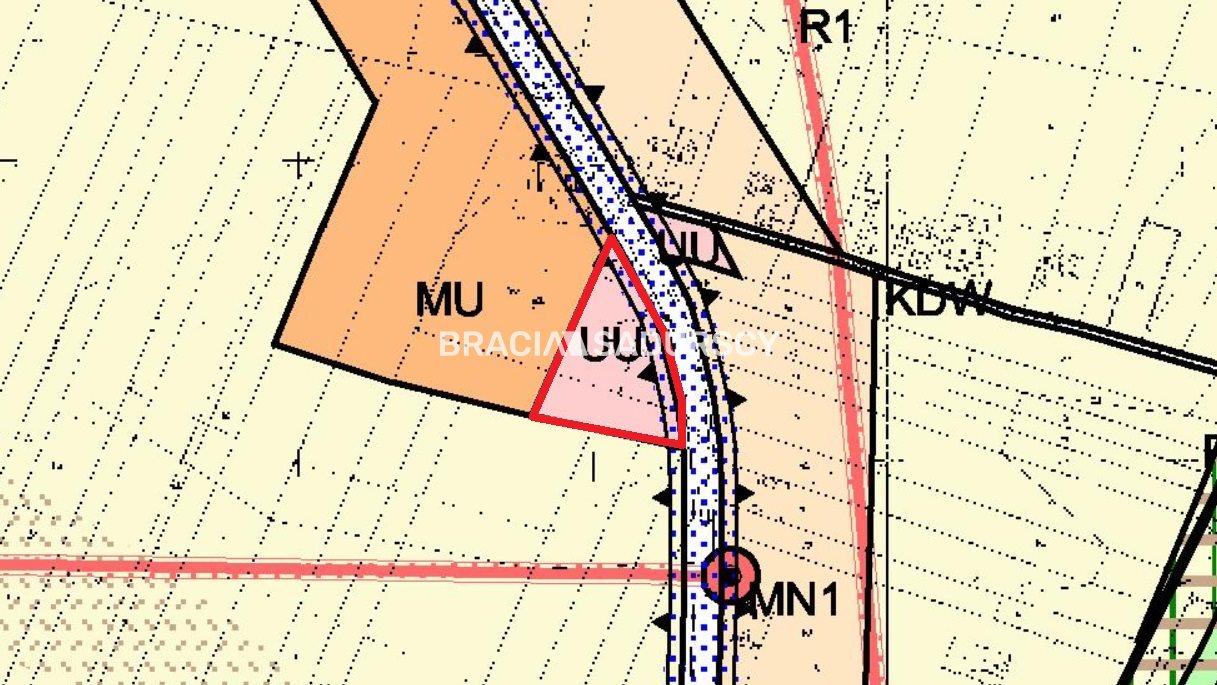 Zgodnie z MPZP działka leży na terenie zabudowy usługowej, komercyjnej , oznaczonym na rysunku planu symbolem UU.