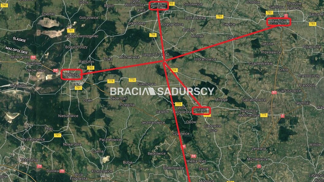 Działka bardzo dobrze skomunikowana z okolicą - dojazd do Wolbromia i Skały zajmuje ok. 10 minut, do Olkusza i Miechowa - 20 minut, a do Krakowa ok. 30 minut.