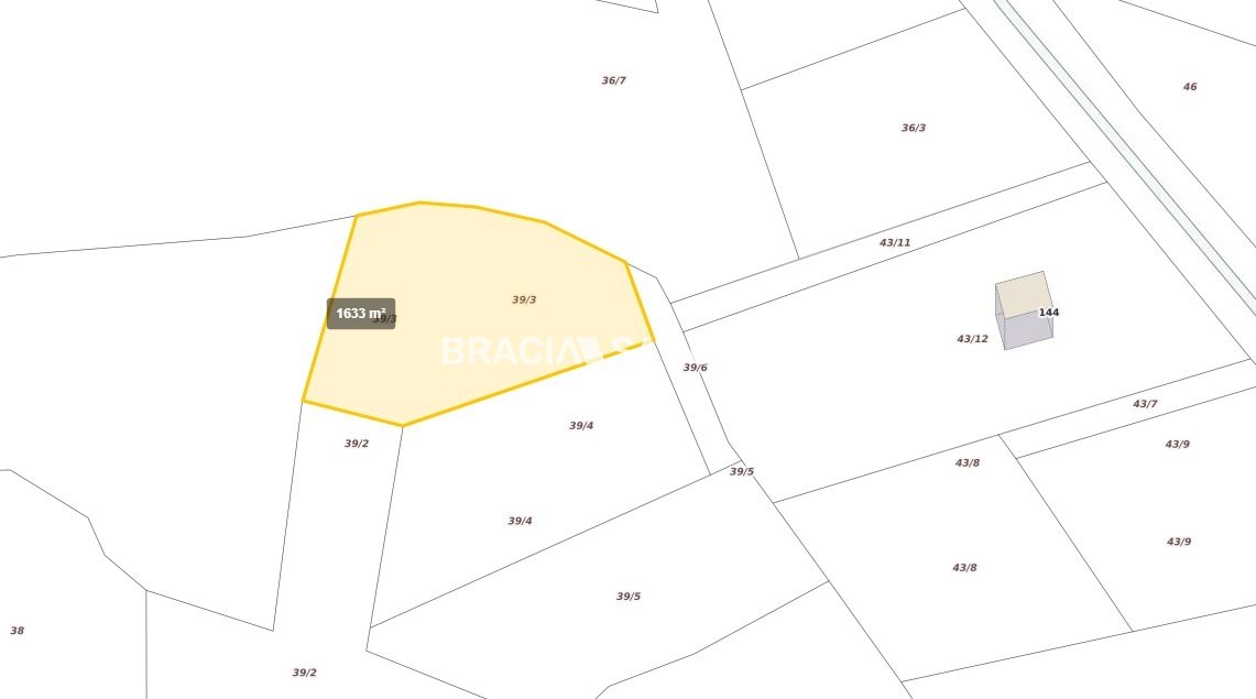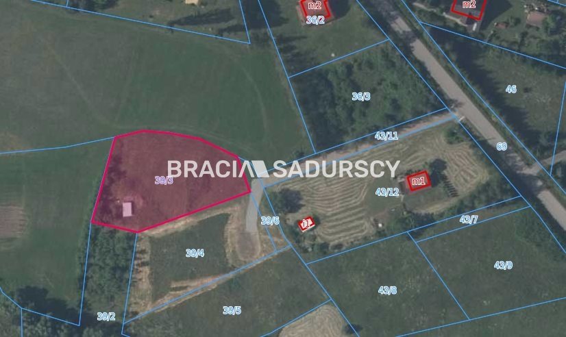 Działka widokowa o powierzchni 1635 m2, działka o nieregularnym kształcie zbliżonym do kwadratu o wymiarach około 40x47 m