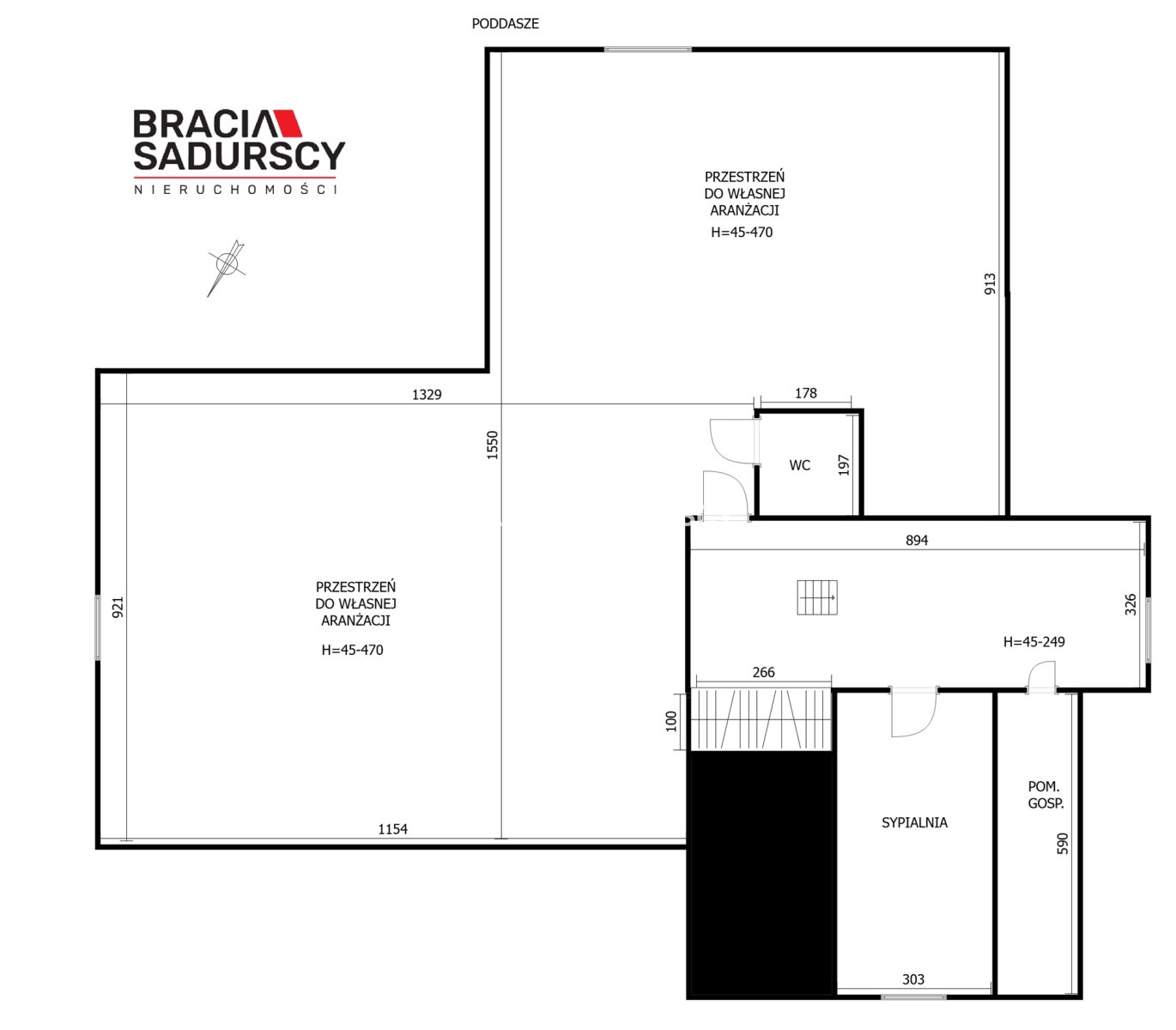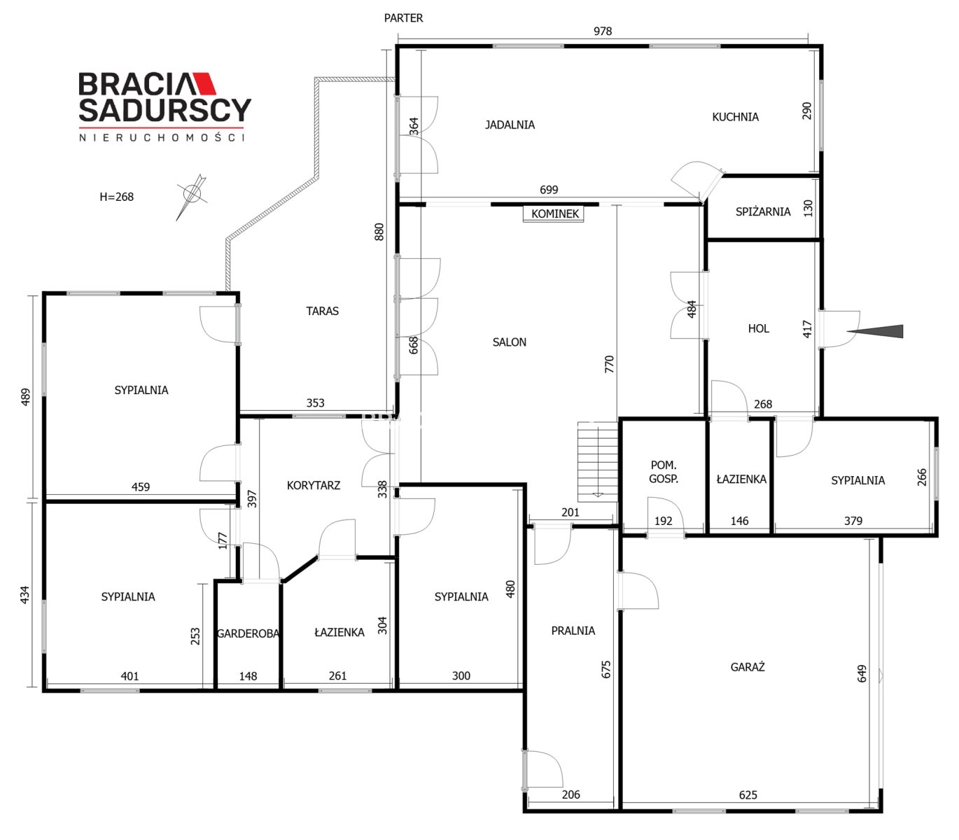 Powierzchnia zagospodarowana wynosi 296 m2 plus garaż 44m2. Dodatkowa powierzchnia niezagospodarowana na poddaszu wynosi 100 m2.