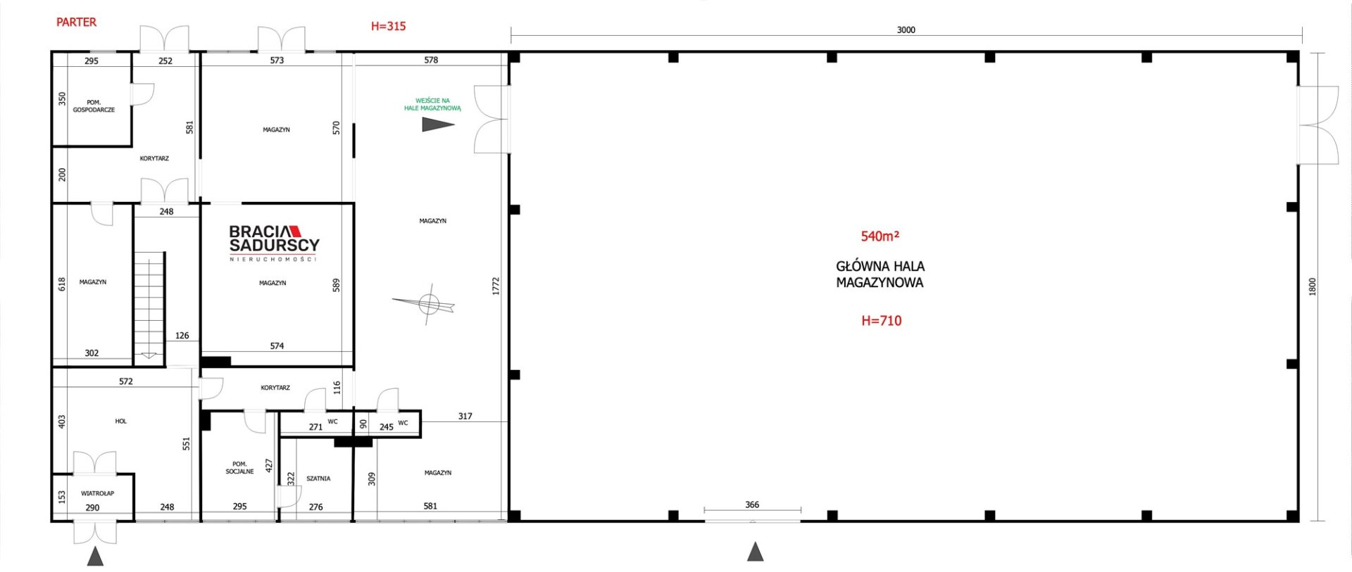 - hala o wysokości 7,1 metra wysokości powierzchnia 540 m2