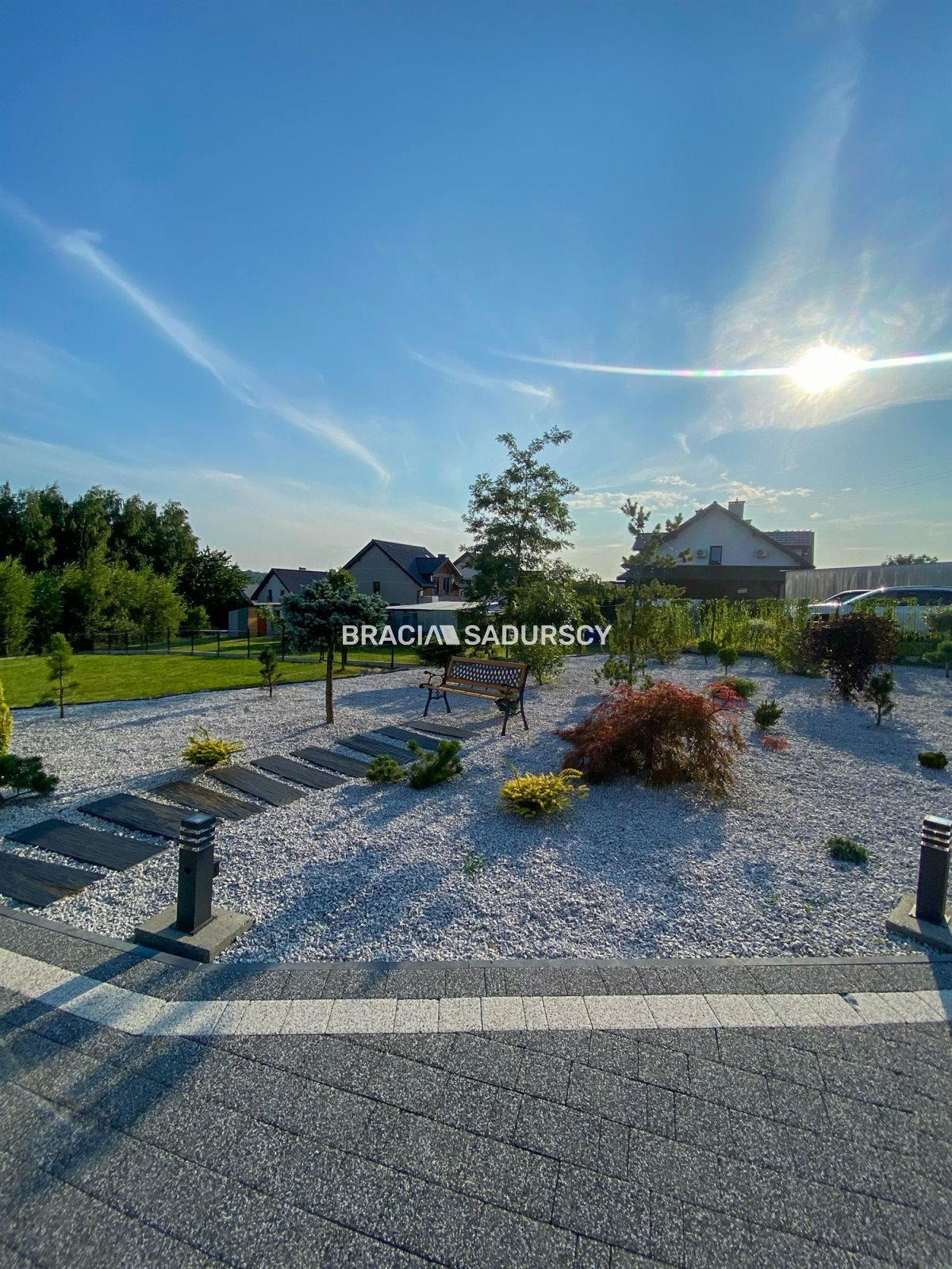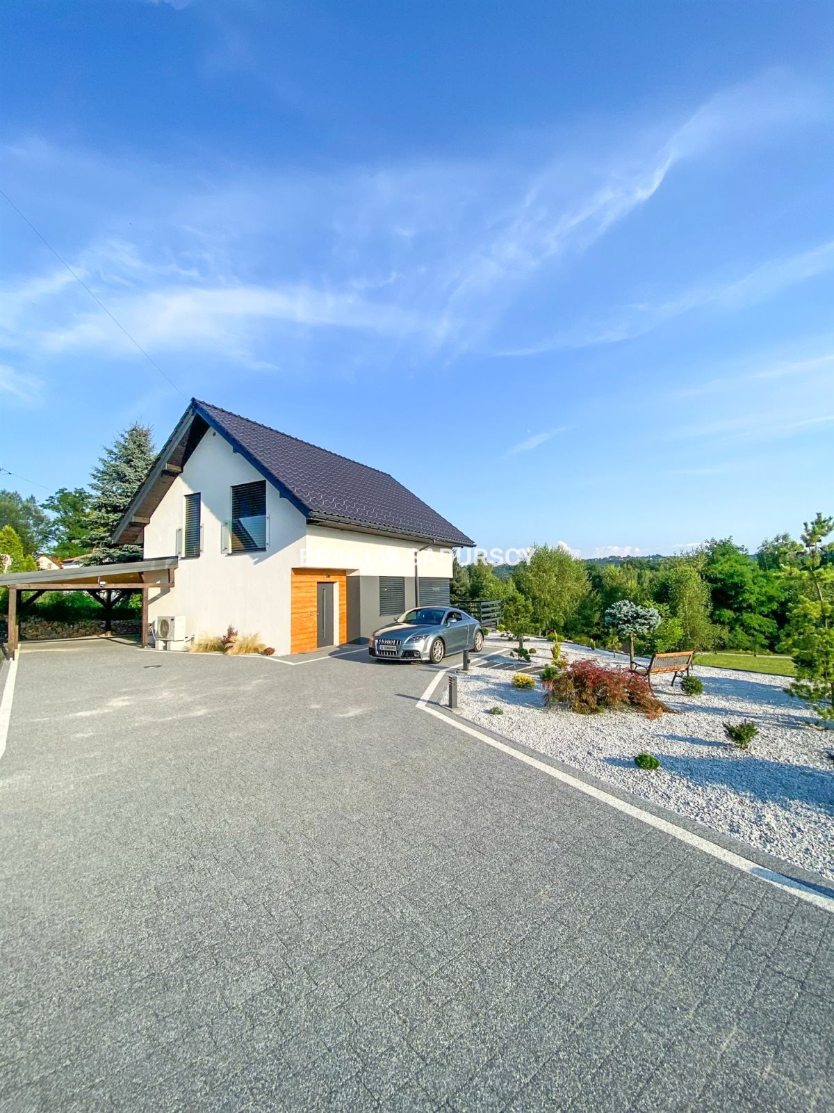 Prezentowana nieruchomość jest położona na działce o powierzchni 25 arów, na lekkim wzniesieniu. Działka jest bardzo ładnie zagospodarowana, estetyczne nasadzenia i części dojazdowe harmonijnie przechodzą w bujną, naturalną zieleń. Działka jest ogrodzona, otoczona nowymi domami jednorodzinnymi. Front domu wychodzi na działki, które nie zostaną już zabudowane, co zapewni przyszłym właścicielom spokój i piękny widok.