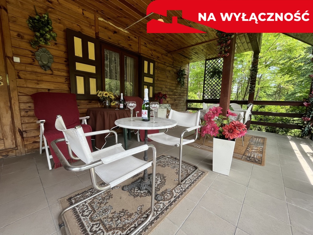 Dom wykonany z drewna o pow. użytkowej 87,5 m2 z dwoma tarasami na ogrodzonej pięknej zadbanej działce o pow. 1643 m 2 z bezpośrednim dostępem do rzeki Krępianka (idealnie nadająca się do odpoczynku) w Lipie Miklas gm. Lipsko woj. mazowieckie (blisko Wisły).