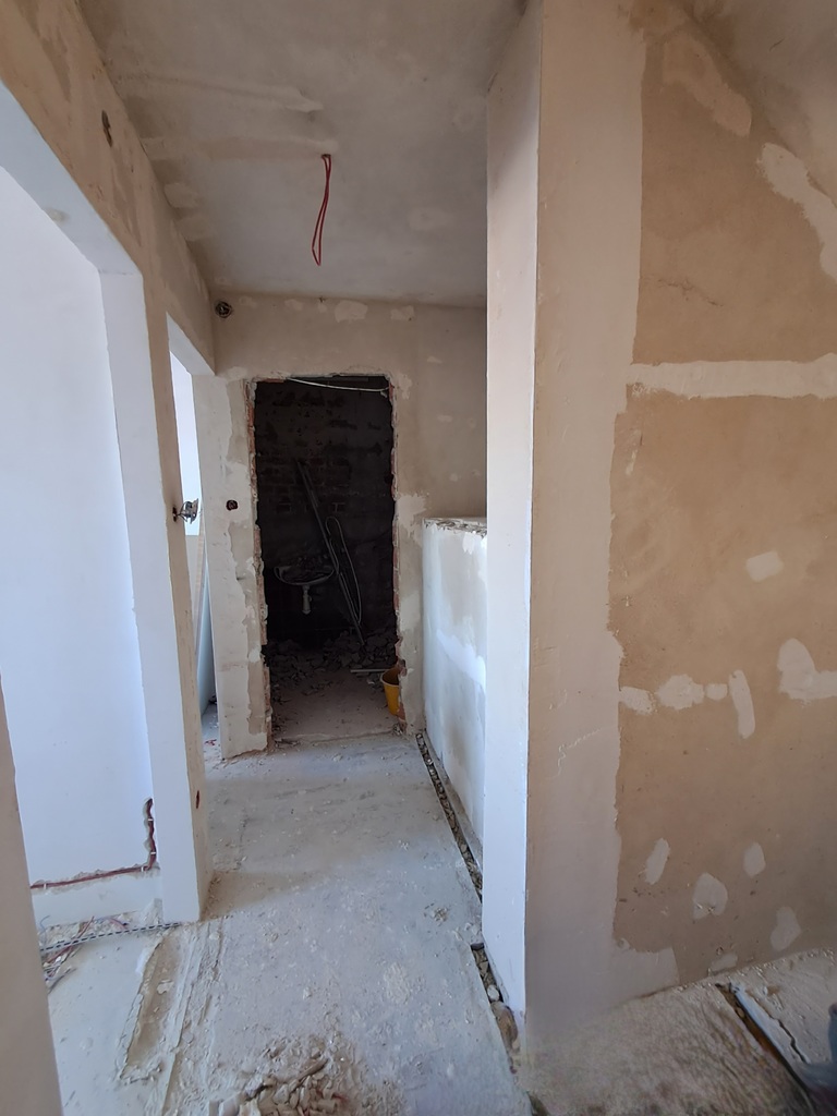 - w mieszkaniu zostały skute podłogi i płytki na ścianach. Zostało doprowadzone do stanu niemalże deweloperskiego. Zostały wymienione instalacje.