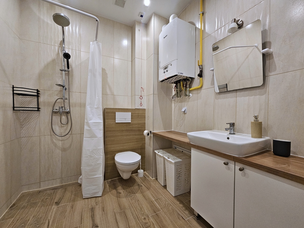 - zamontowane jest tu ogrzewanie podłogowe sterowane z pieca gazowego dwufunkcyjnego / mieszkanie nie posiada kaloryferów
