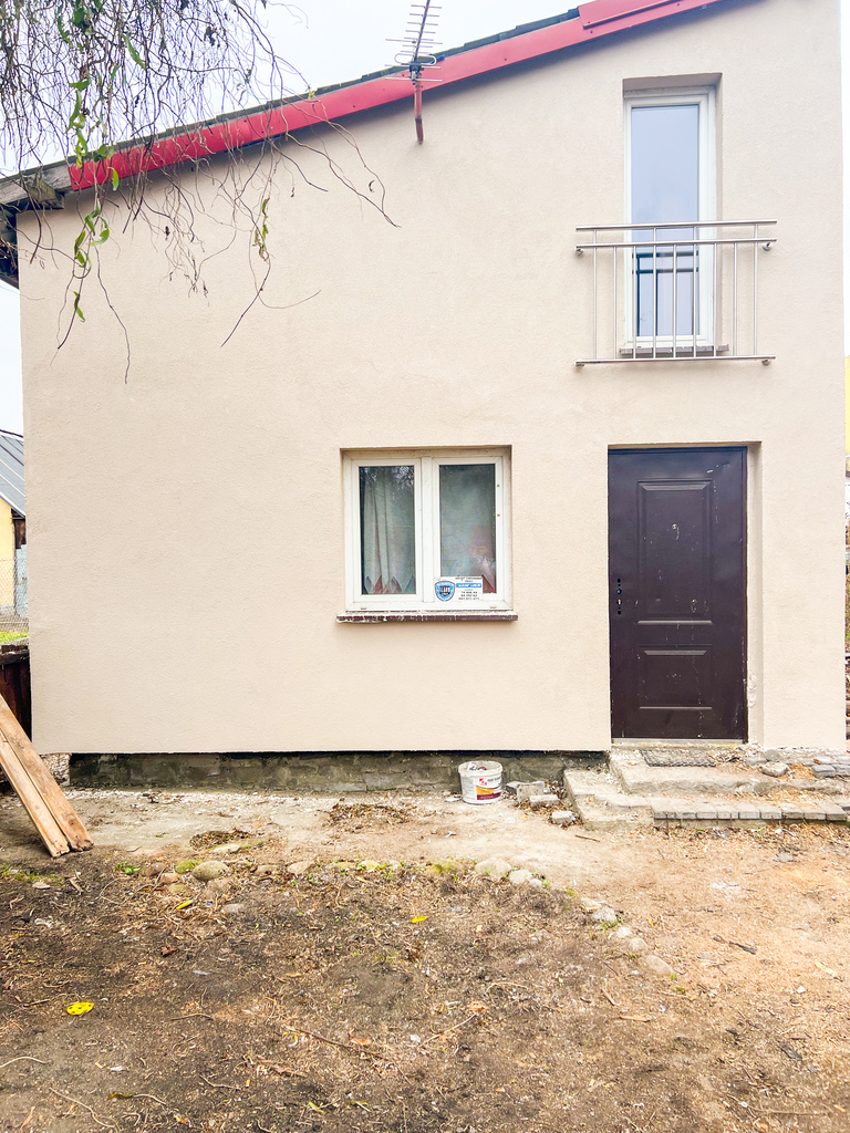 Dom ma bardzo funkcjonalny układ – na parterze znajduje się przestronny pokój z aneksem kuchennym oraz łazienka. Na poddaszu znajdują się dwa dodatkowe pokoje, które można wykorzystać według własnych potrzeb. Nieruchomość wymaga drobnego remontu.