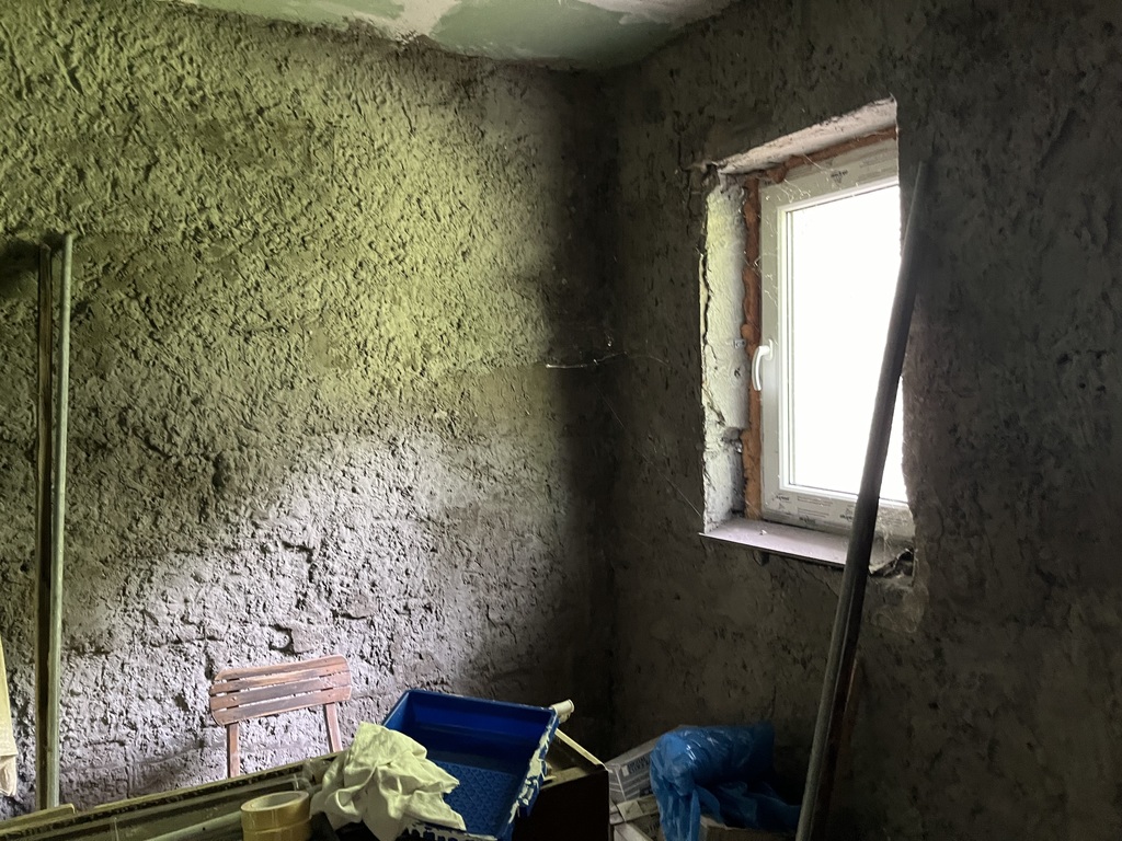 - w budynku wymienione okna na plastikowe oraz wykonane wylewki. Częściowo rozprowadzona instalacja elektryczna.