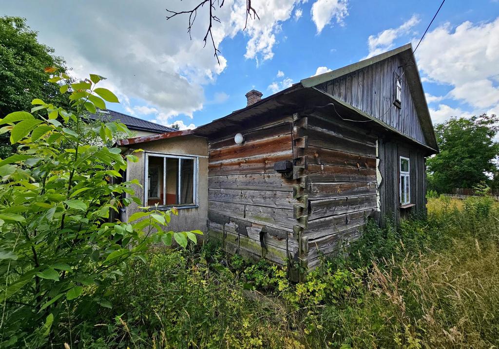 Dom wolnostojącym o powierzchni około 85 m², wykonany w tradycyjnym budownictwie z bali drewnianych. Budynek nadaje się do remontu generalnego.8