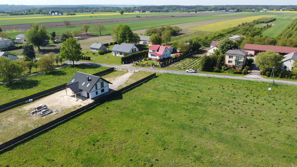 -działka o regularnym kształcie prostokąta o wymiarach 23 m szerokości od przodu i 27 m szer. od tyłu i 102 m długości idealnie nadająca się do posadowienia domu.