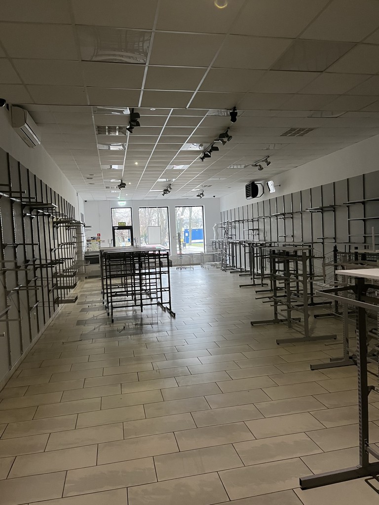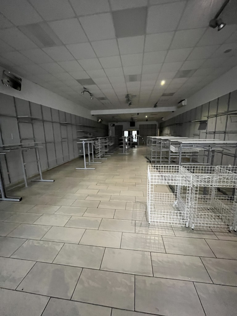 -obiekt wyposażony w halę sprzedaży o pow. 164,5 m kw. i wymiarach 23,5 m długości i 7 m szerokości. Na hali znajdują się dwie przymierzalnie oraz szereg metalowych regałów i stojaków .