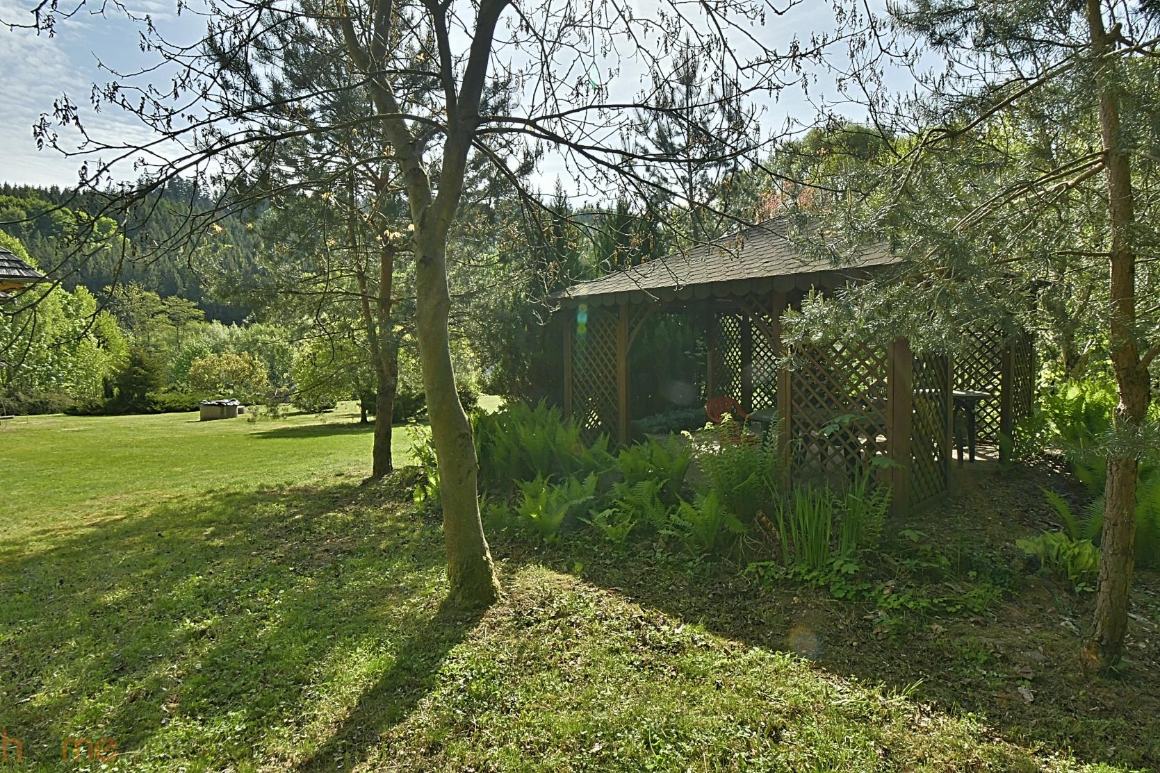 Działka o wielkości 5 799 m2, usytuowana tuż przy granicy z lasem państwowym oraz z bezpośrednim zejściem do strumyka. Cały teren ogrodzony i ładnie zagospodarowany. Na posesji również znajdują się dwie studnie, altanka oraz garaż wolnostojący.