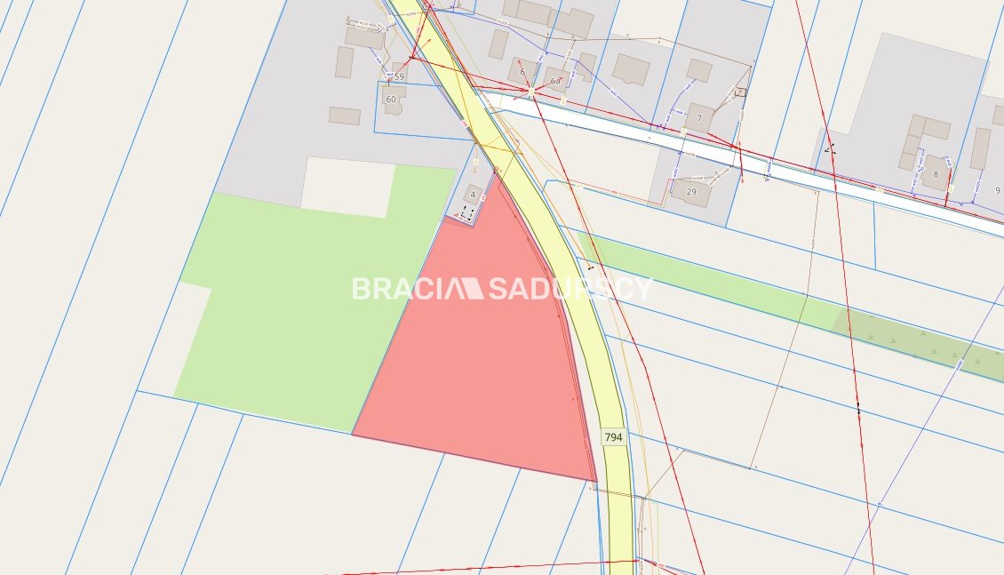 Oferujemy działkę budowlaną o powierzchni 81 a i wymiarach ok. 150x111x125 m. Działka o lekkim nachyleniu o południowej ekspozycji, położona z dala od zabudowy jednorodzinnej. Działka posiada bezpośredni dostęp do drogi publicznej - DW 794.