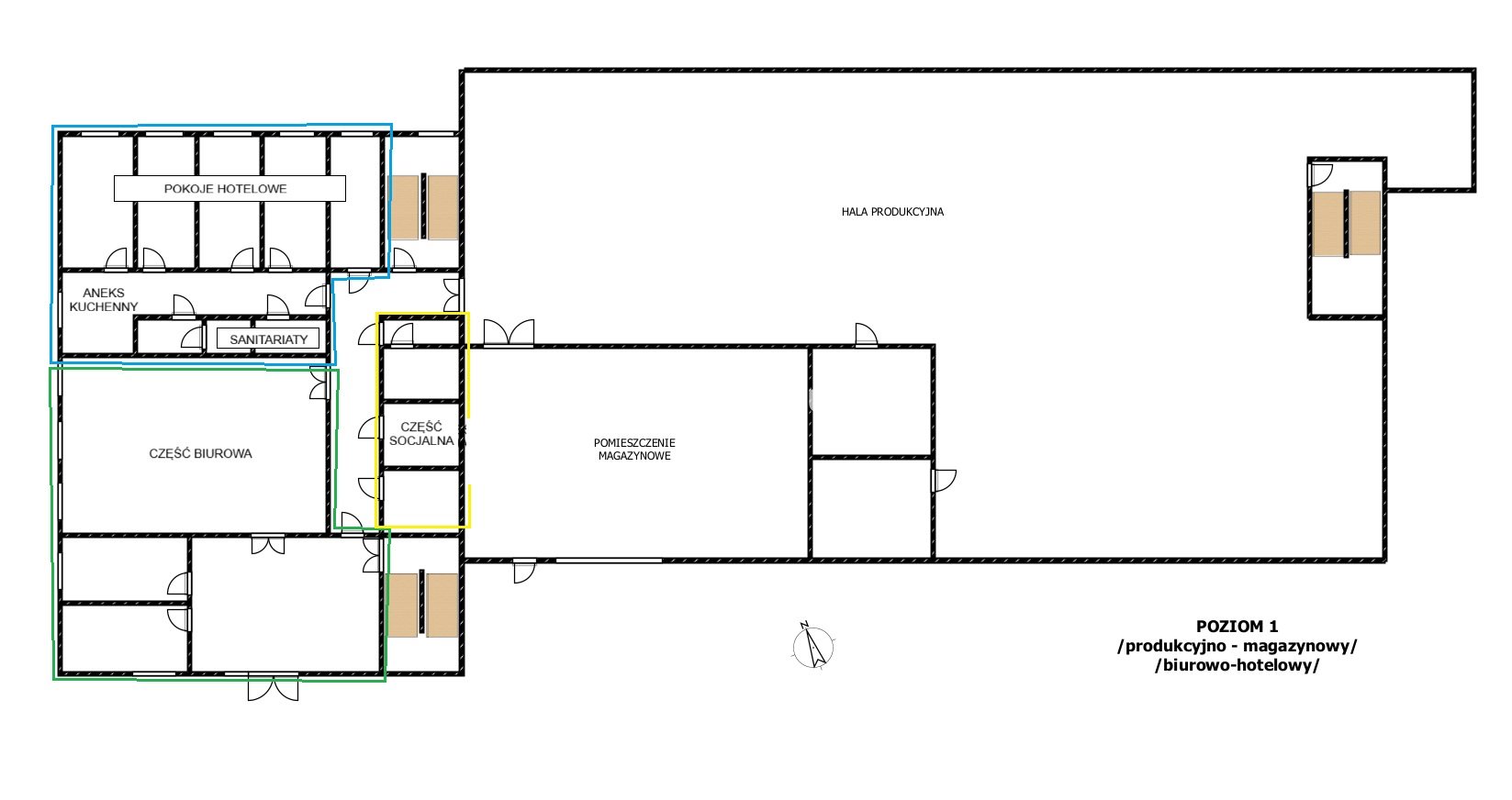 Hala znajduje się w budynku 2 kondygnacyjnym o łącznej powierzchni użytkowej 2951 m 2 , wybudowany w 2010 r., urządzony w wysokim standardzie, usytuowany na ogrodzonej działce o pow. 1,4048 ha z bezpośrednim zjazdem z drogi publicznej. Działka utwardzona kostką brukową na pow. ok. 5000 m 2 . W skład budynku wchodzą 2 hale produkcyjno-usługowe o pow. po 865 m 2 każda. Hale usytuowane są na 1 i 2 kondygnacji. Każda posiada bramę wjazdową (3,2 m x 3,1 m). Wysokość hal od 3,5m do 4,5 m . Możliwy także wynajem powierzchni biurowych, które znajdują się na 3 kondygnacjach zawierajacych powierzchnię biurowo-magazynowo-socjalną o pow. 407 m 2 każda. Łączna pow. pomieszczeń biurowych wynosi ok. 600 m2, ogółem 11 pomieszczeń (sale konferencyjne, gabinety, sekretariat), 5 pomieszczeń socjalnych i 6 pomieszczeń sanitarnych. Na pozostałej powierzchni znajduje się obecnie 5 pokoi mieszkalnych po 18 m 2 każdy, z zapleczem socjalnym i sanitarnym.
