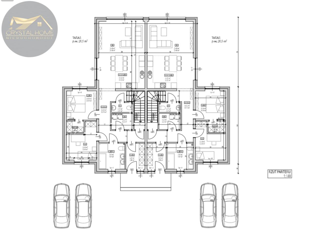 Na sprzedaż oferujemy połowę bliźniaka w stanie deweloperskim o powierzchni 211,dm2 z czego 155,35 m2 stanowi powierzchnia mieszkalna a 137,67 m2 użytkowa.