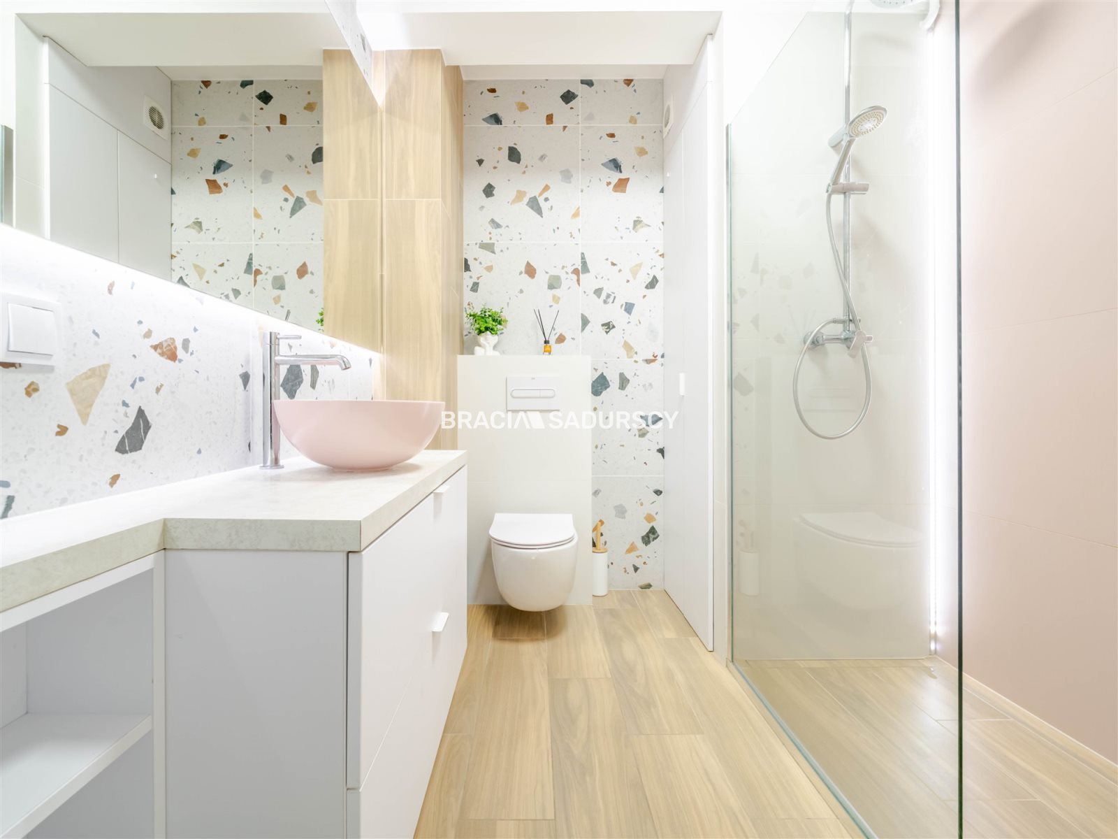 Mieszkanie jest jasne, ustawne i wykończone w neutralnym, ponadczasowym stylu.