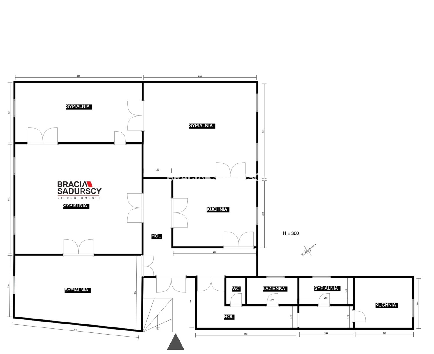 - 4 mniejsze pomieszczenia (druga kuchnia, spiżarnia, łazienka, WC, hol o łącznej powierzchni ok 32m)