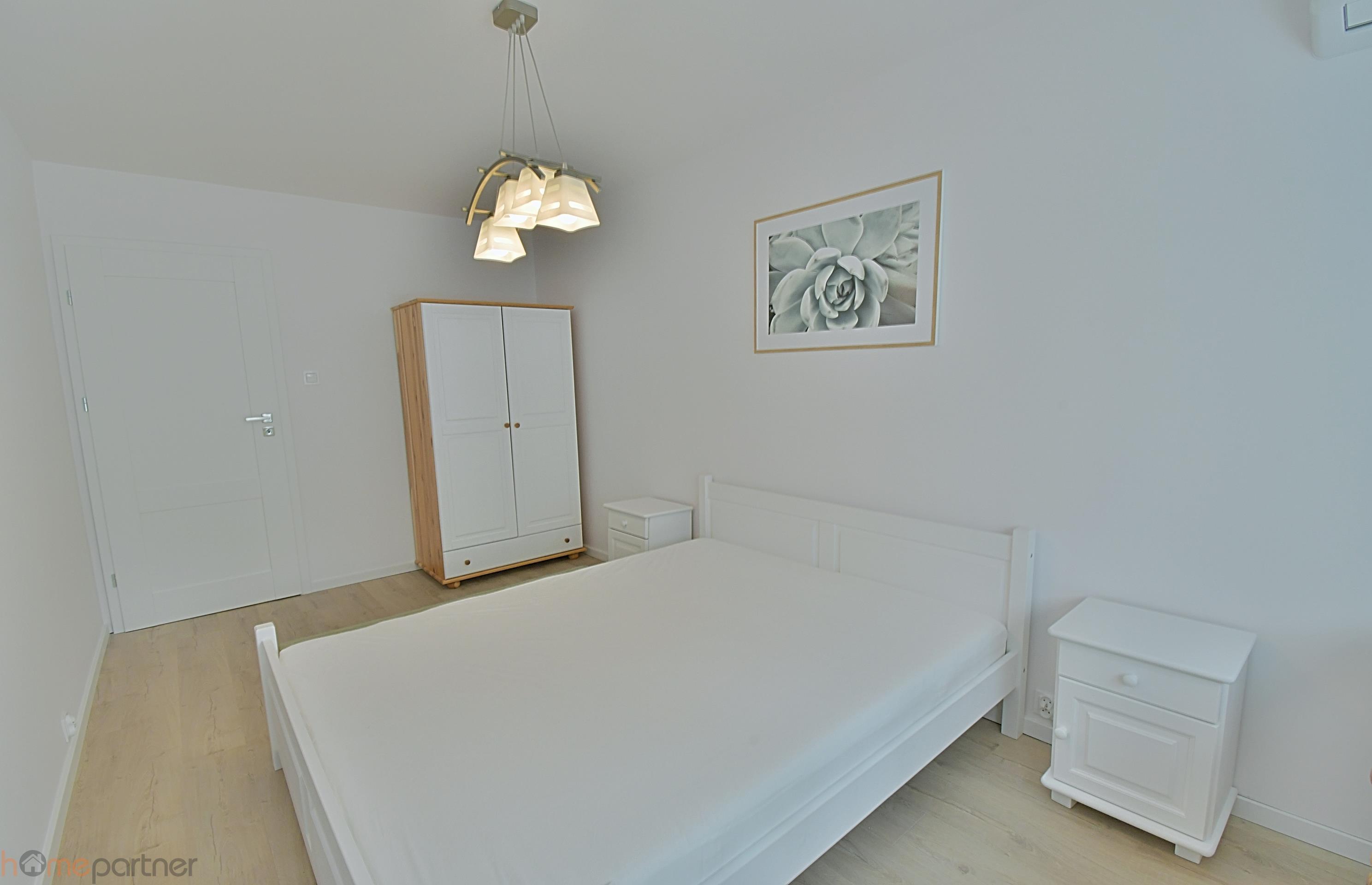Kuchnia w zabudowie wyposażona w lodówko-zamrażarkę, płytę indukcyjną, kuchenka mikrofalowa wysokiej klasy z funkcją piekarnika, okap, zmywarkę. Łazienka z wanną wraz ze szklanym panelem umożliwiającym swobodne korzystanie z natrysku, pralka na wyposażeniu. W przedpokoju duża szafa ubraniowa w zabudowie, jak również przydatna szafa gospodarcza. Salon kompletnie wyposażony: sofa, ława, fotel, telewizor, stół z krzesłami. W sypialni łóżko małżeńskie. Druga sypialnia z kanapą. We wszystkich pomieszczeniach rolety.