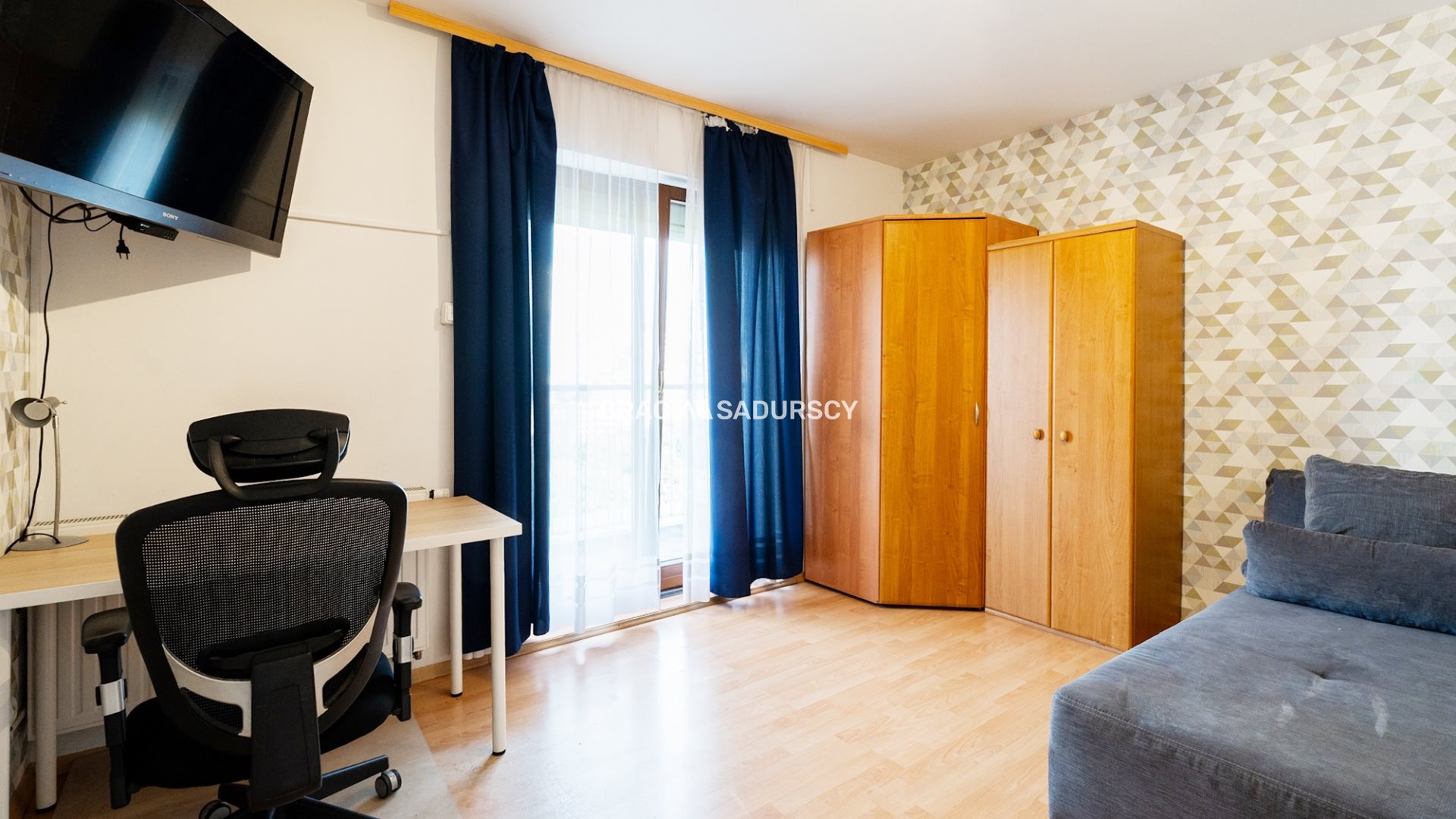 - trzech niezależnych pokoi (20 ; 14,70 ; 13,30 m2), z każdego wyjścia na balkon,
