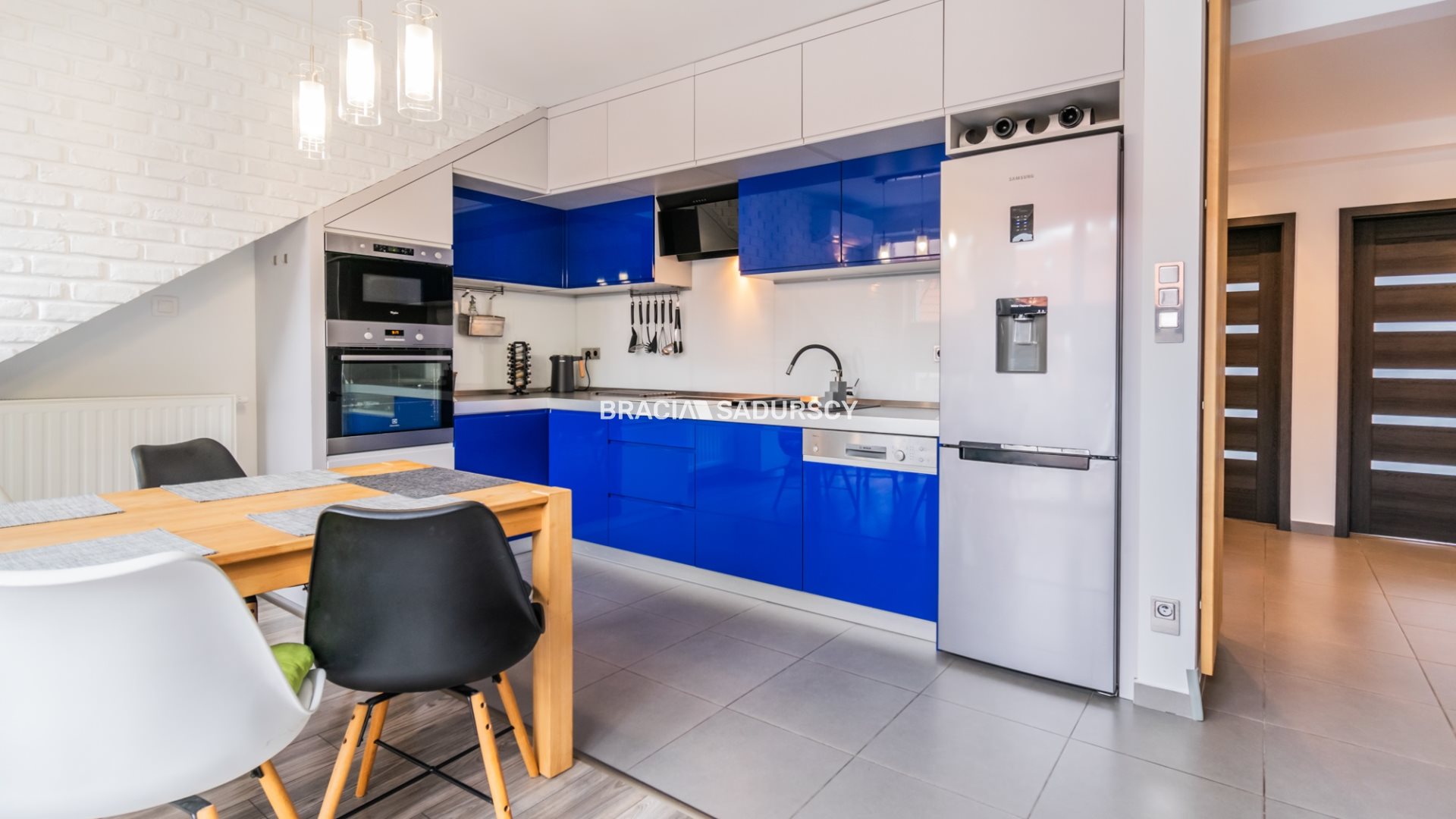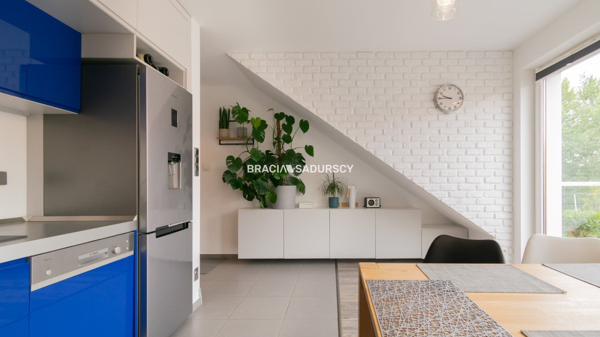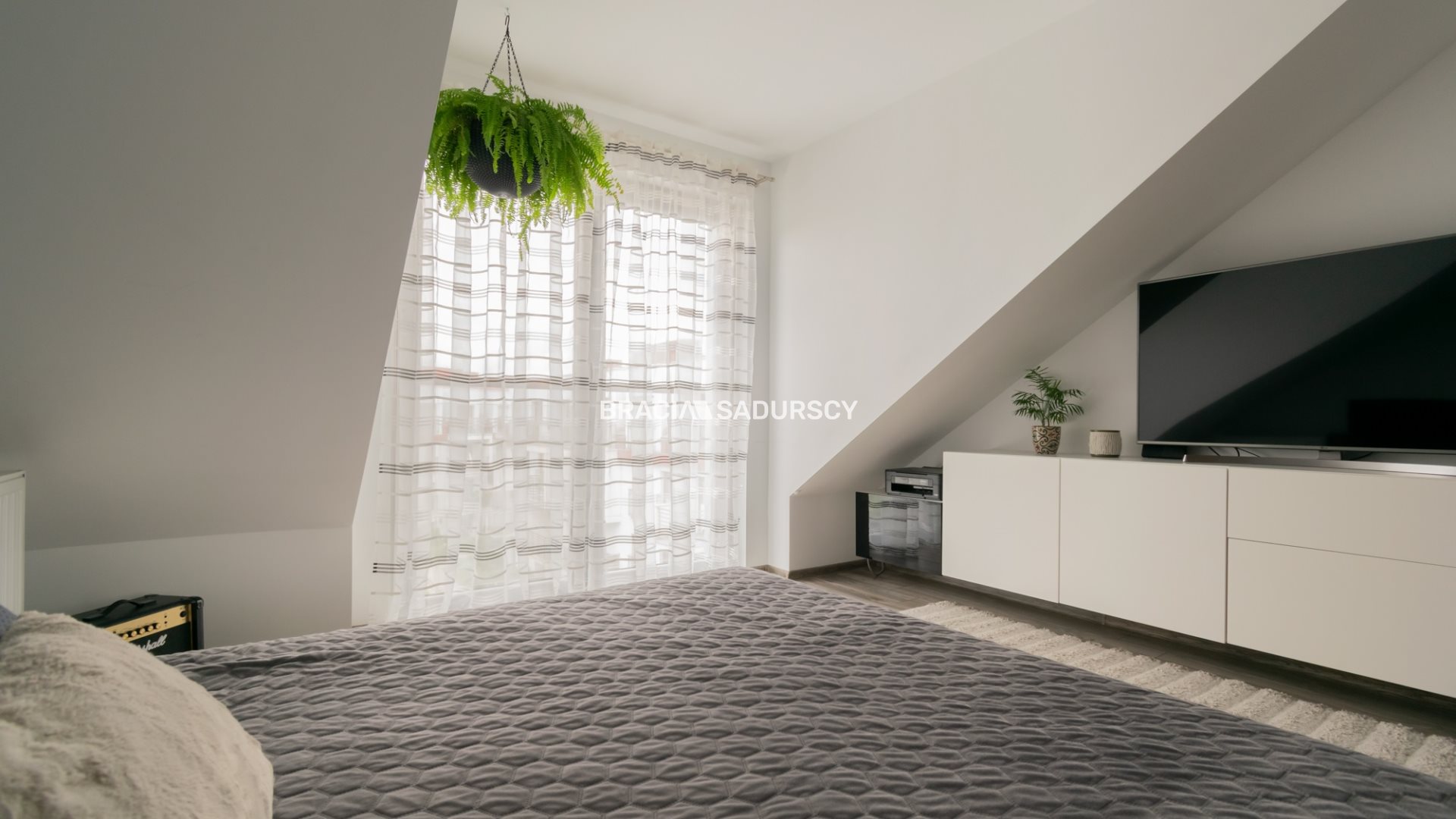Salonu z aneksem kuchennym o łacznej pow. ok 20 m2 - z salonu wyjście na duży przeszklony balkon - ekspozycja zachodnia. Nowoczesna kuchnia pod zabudowę wyposażona w ciche domyki, system Rejs, cargo oraz sprzęty AGD: płyta AEG, zmywarka Bosch, piekarnik Electrolux z systemem samoczyszczenia, mikrofala Whirlpool, lodówka Samsung. Pomieszczenie posiada podwieszany sufit oraz doskonale zagospodarowane przestrzenie pod skosami oraz meble do sufitu, co zapewnia dużo miejsca do przechowywania. Dodatkowo w maju 2024 zamontowano klimatyzacje, a w oknach zamontowano plisy odbijające światło.