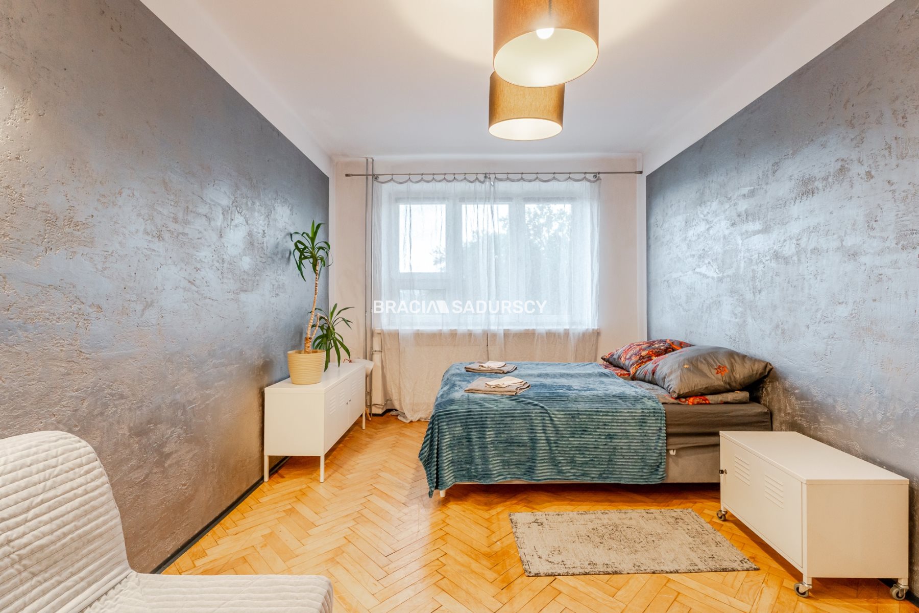 -Dużej, w pełni umeblowanej sypialni (16,5 m²) z oknami wychodzącymi na południe.