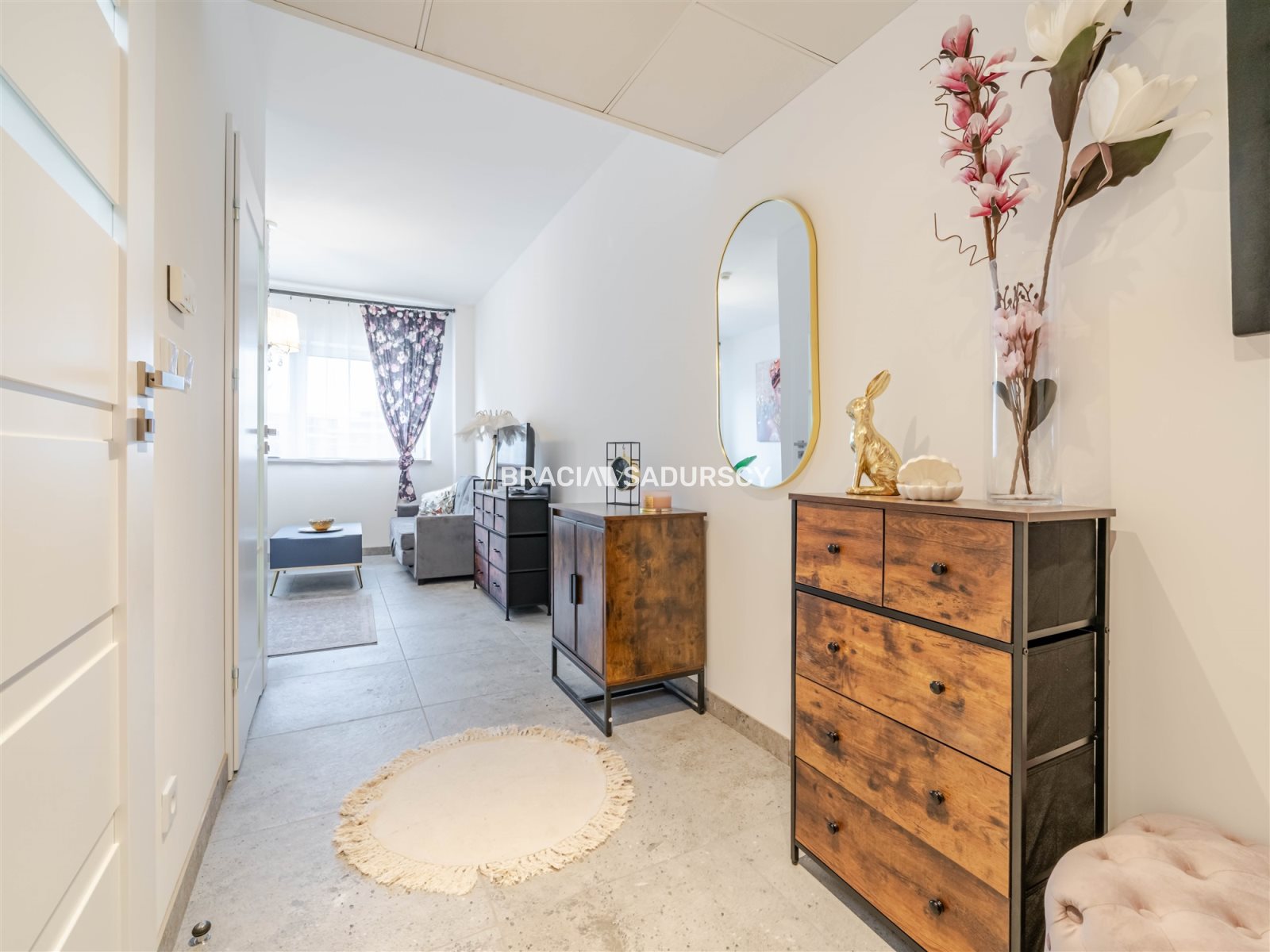Funkcjonalny układ obejmuje osobną kuchnię, przestronny przedpokój, ustawny salon oraz łazienkę z prysznicem. Kuchnia wyposażona w komplet nowych mebli i sprzętów : płytę indukcyjną, lodówkę oraz pochłaniacz. W łazience nowa kabina prysznicowa i WC w zabudowie. Salon umeblowany, gotowy do przyjęcia najemcy. Komfort podnosi klimatyzacja.