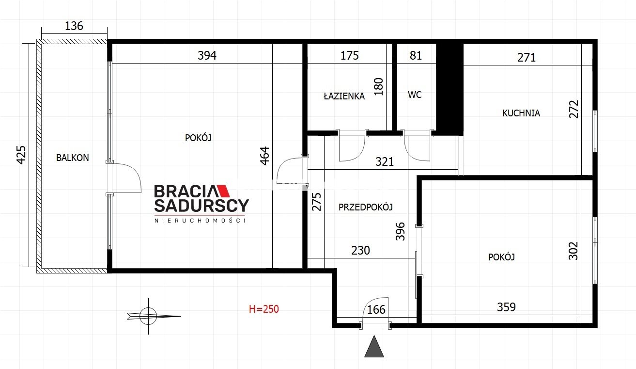 Układ mieszkania daje możliwość przeniesienia kuchni jako aneksu do dużego pokoju, a kuchnię zaadoptowania na dodatkowy, trzeci pokój.