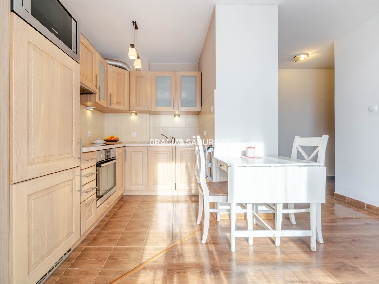 Mieszkanie wykończone w bardzo dobrym standardzie - na podłodze panele oraz płytki. Kuchnia wykończona meblami na wymiar ze sprzętem AGD (lodówka w zabudowie, pł.indukcyjna, piekarnik, kuchenka mikrofalowa, zmywarka, okap). Istnieje możliwość pozostawienia mebli, które widnieją na zdjęciach, w cenie mieszkania (bez wersalki i komódki).