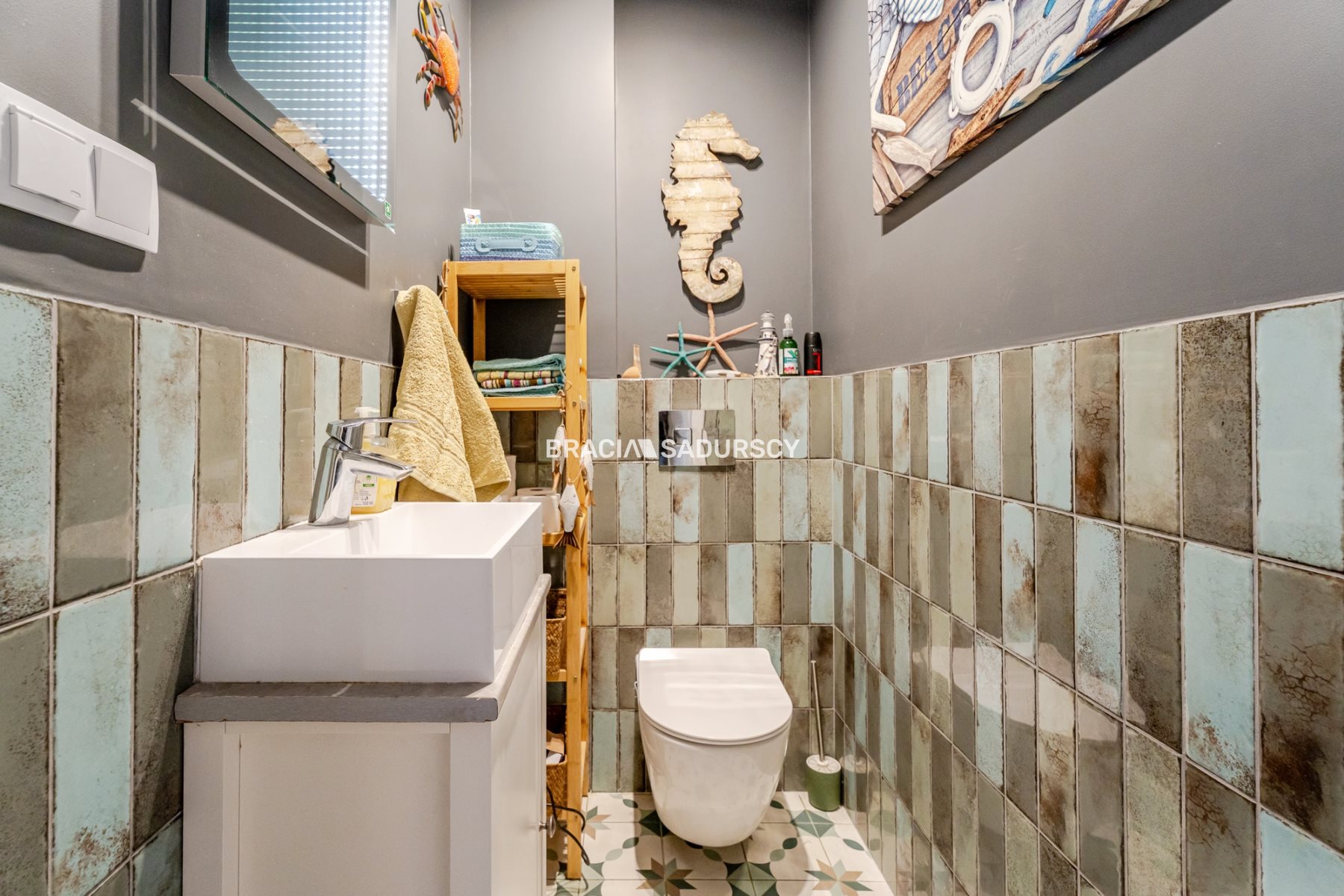 Na podłogach w zależności od pomieszczeń znajdują się panele lub płytki. Trójszybowe okna zapewniają doskonałe właściwości termoizolacyjne zarówno latem jak i zimą. Naroże okno w salonie pozwala cieszyć się cudownym widokiem na ogród.
