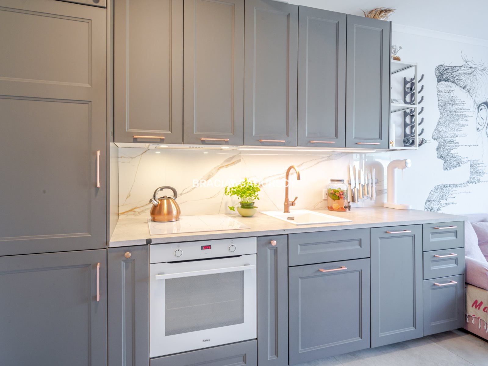 W całym mieszkaniu znajduje się ogrzewanie podłogowe (ogrzewanie i woda ciepła piec dwu-funkcyjny).