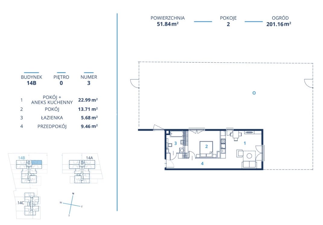 Metraże od 32m2 - 70m2 (-1,-2,-3, pokojowe)