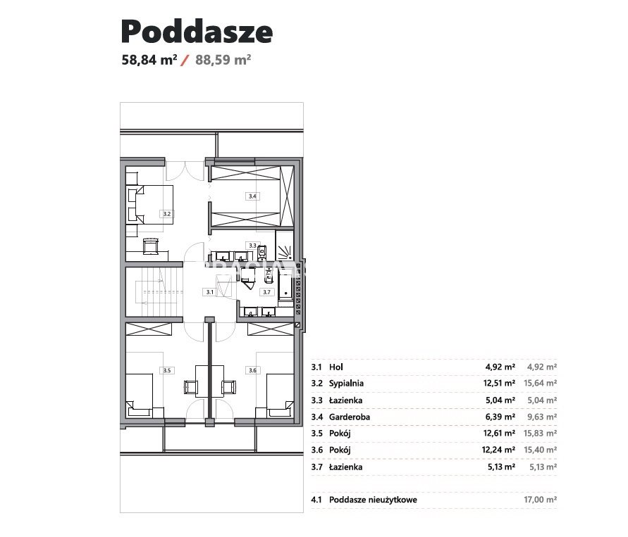 • 4.1 Poddasze nieużytkowe: 17,00 m²