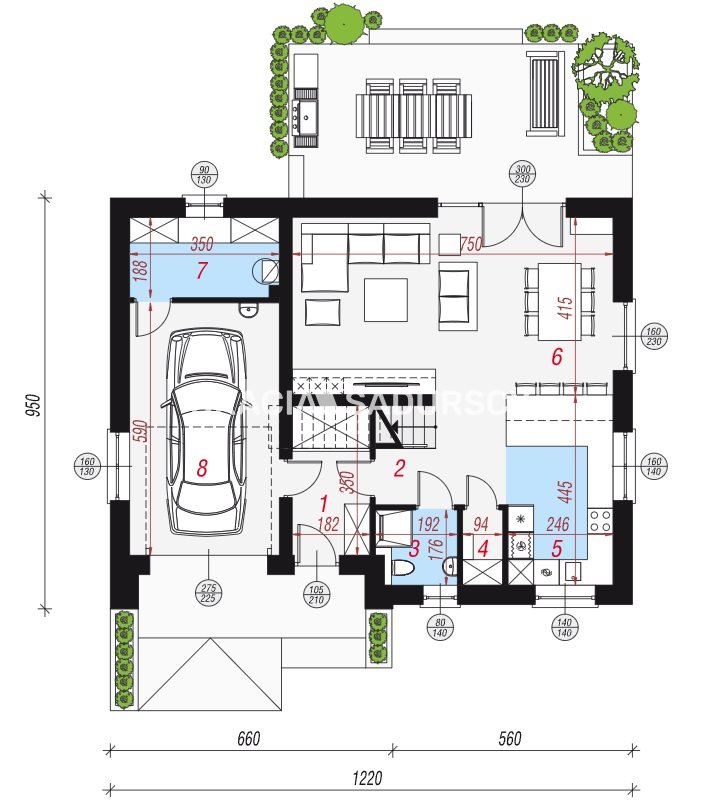 Dom o powierzchni użytkowej 174m2 usytuowany na działce o pow. 7 arów został wybudowany według projektu AURORA 14 od firmy ARCHON.