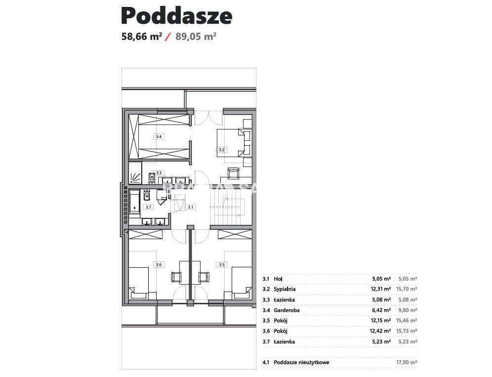 • Dodatkowe poddasze nieużytkowe - 17 m²