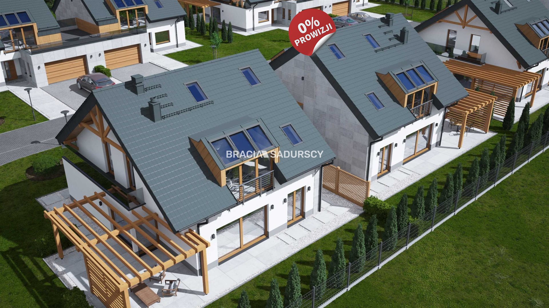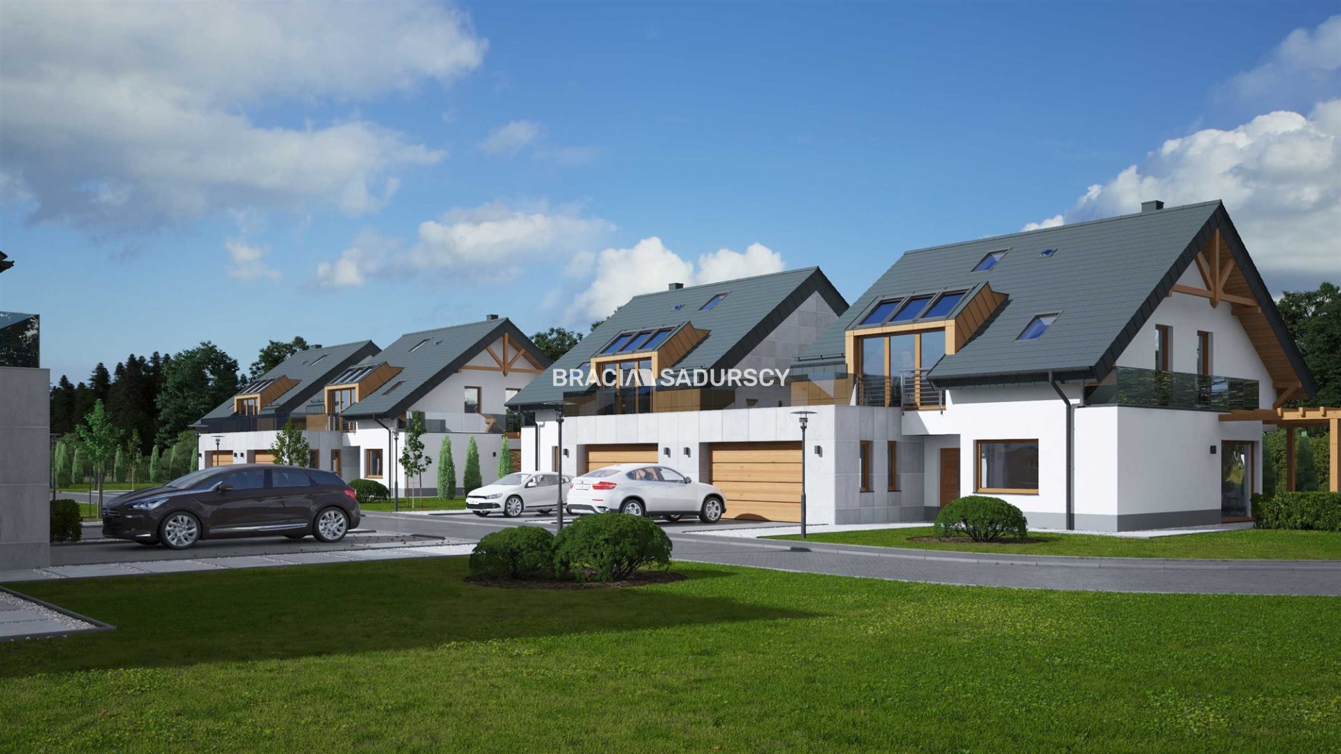 Każdy dom na osiedlu został zaprojektowany z myślą o maksymalnym komforcie mieszkańców. Zastosowano nowoczesne rozwiązania, takie jak segmentowe bramy garażowe Hormann LPU 67 Thermo Plus, pompy ciepła Dimplex, a także systemy wentylacji mechanicznej VentiAir z odzyskiem energii, które zapewniają optymalny mikroklimat wnętrz przez cały rok. Dodatkowo, garaże są oddzielnie wentylowane rekuperatorami Prana, a każdy dom posiada podziemny zbiornik na wodę deszczową o pojemności 10 m³, co pozwala na jej późniejsze wykorzystanie, np. do podlewania roślin.